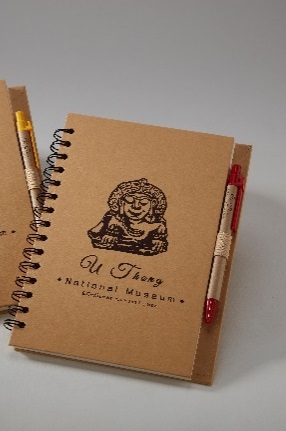 ชื่อสินค้า สมุดบันทึก ภาพบุคคลดินเผา ขนาด A 5 พร้อมปากกา วัสดุ กระดาษคราฟท์ หุ้มกระดาษแข็งจั่วปัง เข้าเล่มแบบห่วงกระดูกงู พร้อมปากกา ผู้ออกแบบ ชื่อ นางสาวนริศญ์ชา รักคง กลุ่ม ประณีตศิลป์ สำนักช่างสิบหมู่ ผู้ผลิต กรมศิลปากร สถานที่จำหน่าย พิพิธภัณฑสถานแห่งชาติ อู่ทอง โทร ๐๓๕-๕๕๑-๐๒๑ อีเมล์ nm_utong@finearts.go.th, uthongmuseum@hotmail.com Line............................................................. |