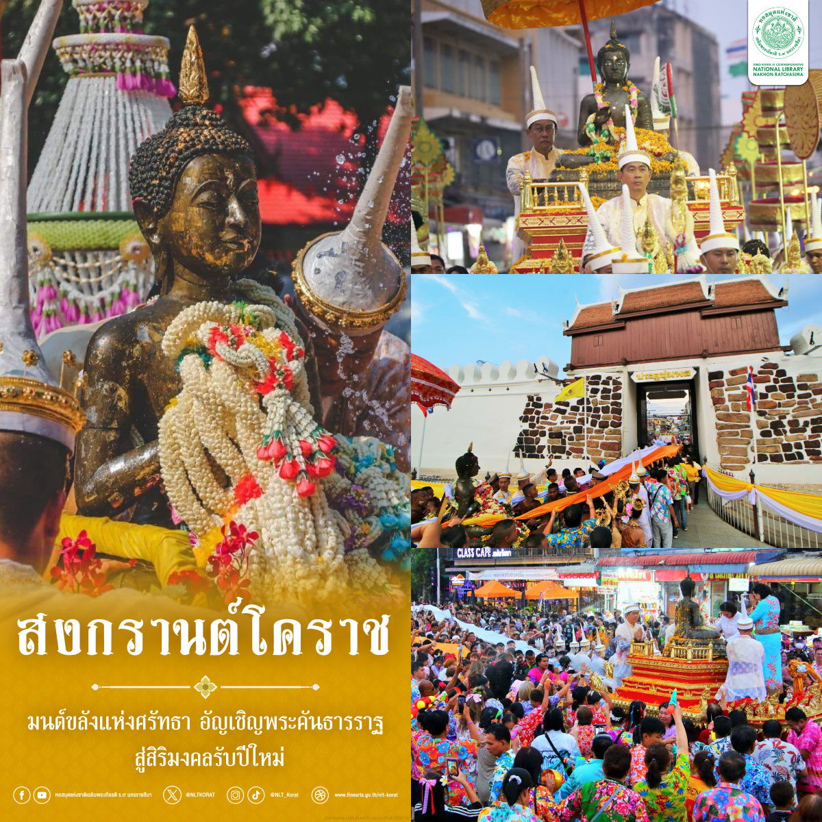 • สำนักงานประชาสัมพันธ์จังหวัดนครราชสีมา. ผู้ว่าโคราช นำ ปชช.กว่า 1,000 คน ร่วมแห่พระคันธารราฐ ลอดซุ้มประตูเมือง อย่างยิ่งใหญ่ เสริมมงคล ในประเพณีมหาสงกรานต์โคราช. [ออนไลน์]. สืบค้นเมื่อ 5 เมษายน 2568, จาก:https://nakhonratchasima.prd.go.th/content/page/index/id/174040