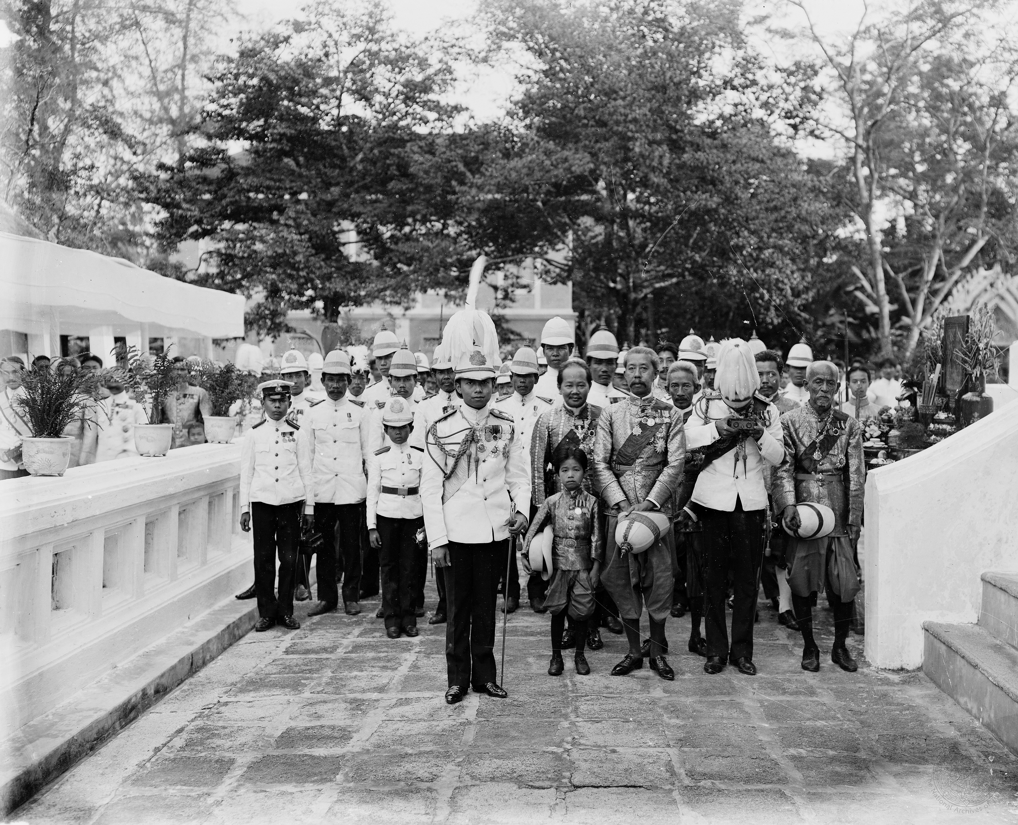 ภาพ : ช้างพระที่นั่งของพระเจ้าน้องยาเธอ กรมหลวงดำรงราชานุภาพ เสนาบดีกระทรวงมหาดไทย ระหว่างเสด็จตรวจราชการมณฑลปักษ์ใต้ ด้านหลังเห็นวอของหม่อมและพระธิดาที่ตามเสด็จ ถ่ายเมื่อเดือนกรกฎาคม พุทธศักราช 2449