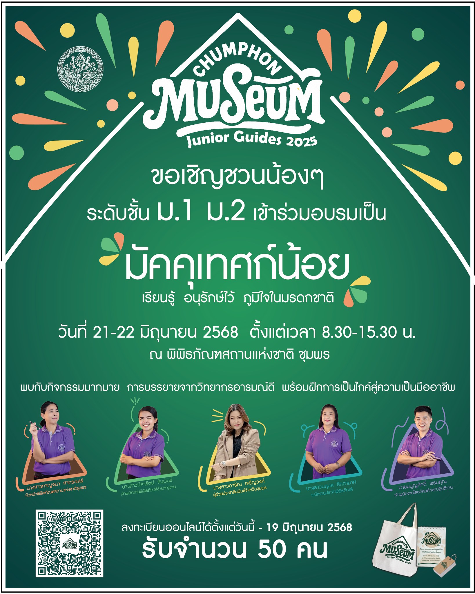พิพิธภัณฑสถานแห่งชาติ ชุมพร เปิดรับสมัครเยาวชนร่วมอบรมเป็นมัคคุเทศก์น้อย