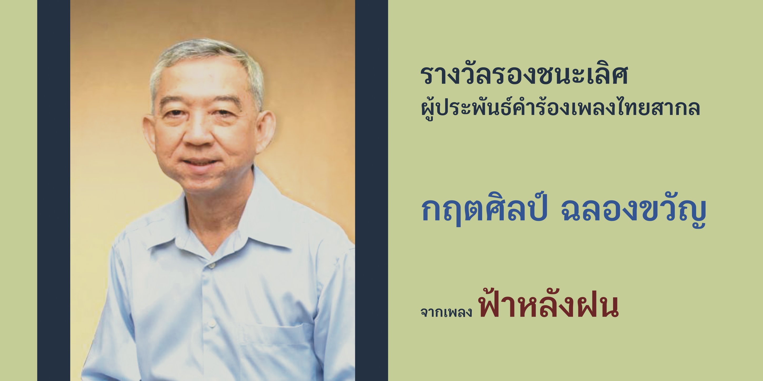 ๒. รางวัลรองชนะเลิศ ผู้ประพันธ์คำร้องเพลงไทยสากล ได้แก่ นายกฤตศิลป์ ฉลองขวัญ จากเพลง ฟ้าหลังฝน
