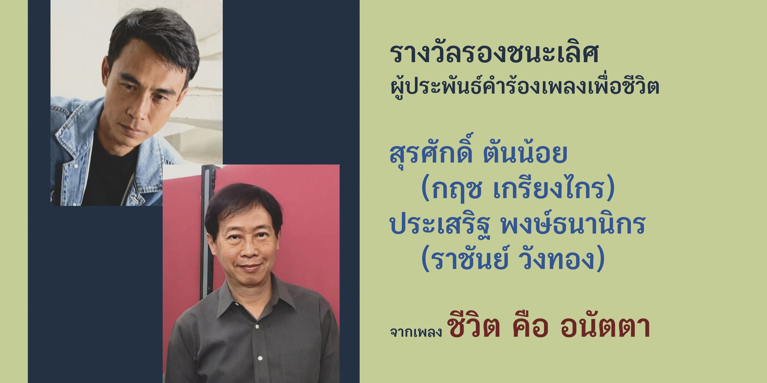 ๖. รางวัลรองชนะเลิศ ผู้ประพันธ์คำร้องเพลงเพื่อชีวิต ได้แก่ นายสุรศักดิ์ ตันน้อย (กฤช เกรียงไกร) และ นายประเสริฐ พงษ์ธนานิกร (ราชันย์ วังทอง) จากเพลง ชีวิต คือ อนัตตา