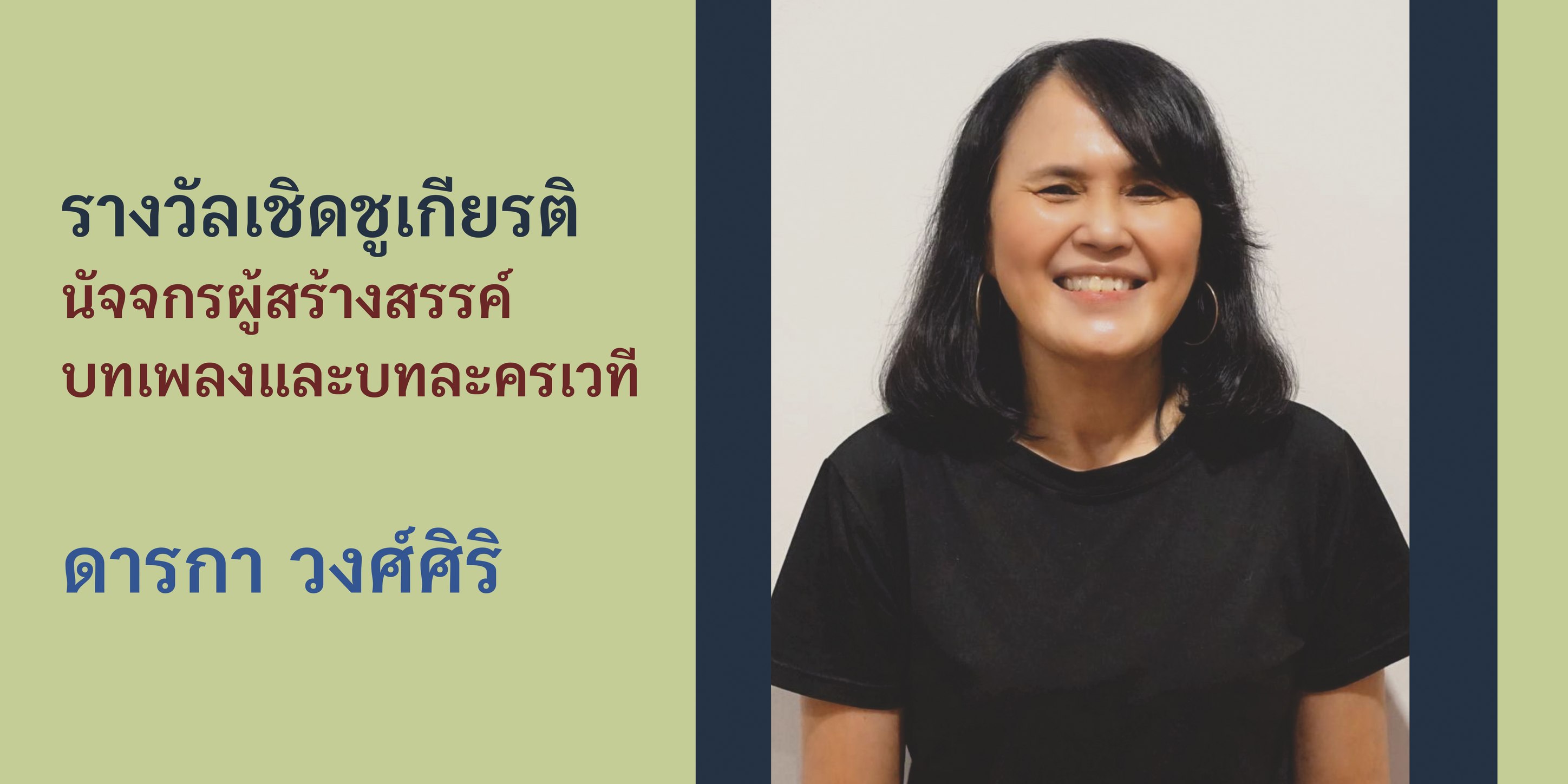 ๑. รางวัลเชิดชูเกียรติ นัจจกรผู้สร้างสรรค์บทเพลงและบทละครเวที ได้แก่ นางดารกา วงศ์ศิริ