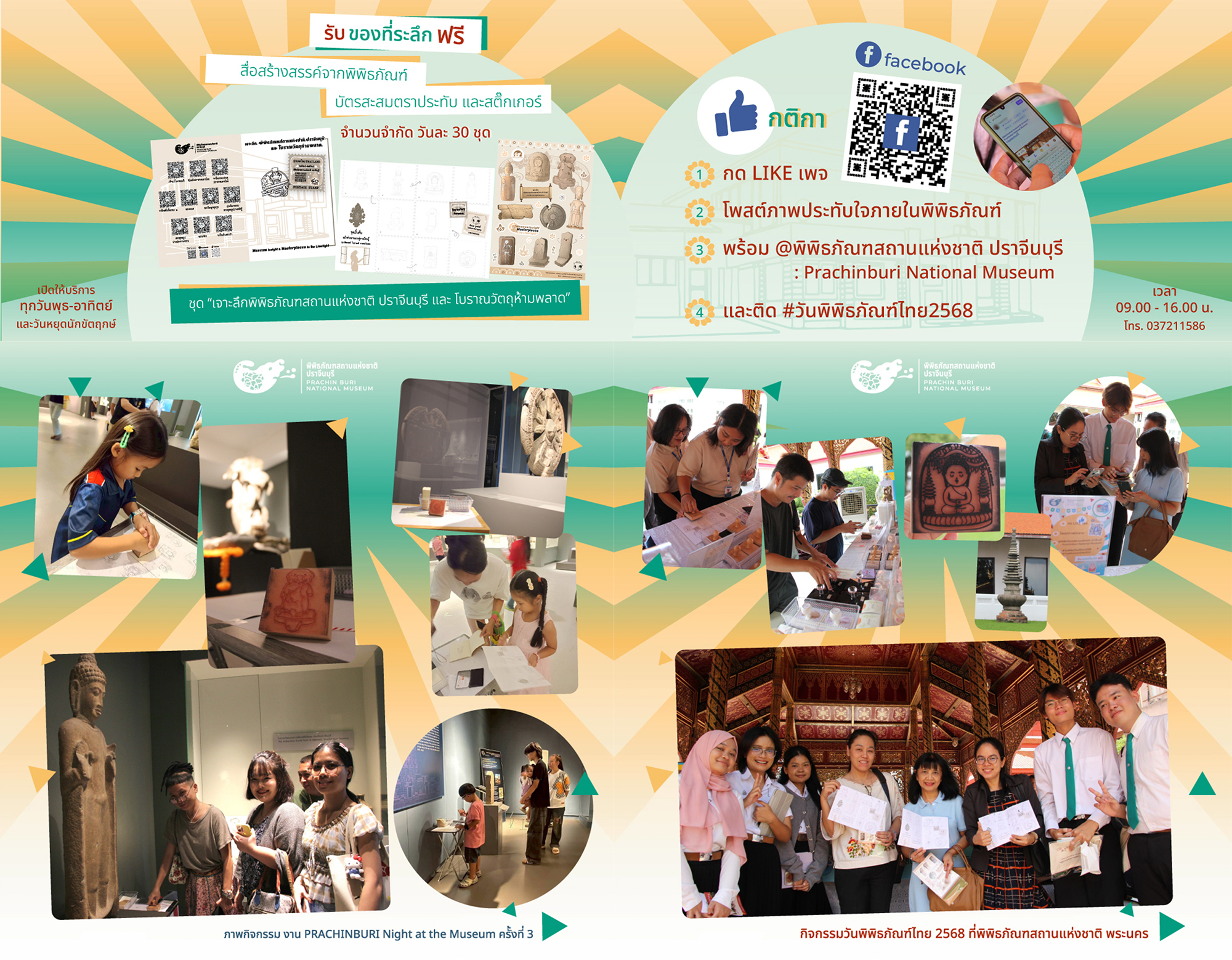 สอบถามเพิ่มเติม โทร. ๐ ๓๗๒๑ ๑๕๘๖ Facebook พิพิธภัณฑสถานแห่งชาติ ปราจีนบุรี : Prachinburi National Museum https://www.facebook.com/prachinburimuseum