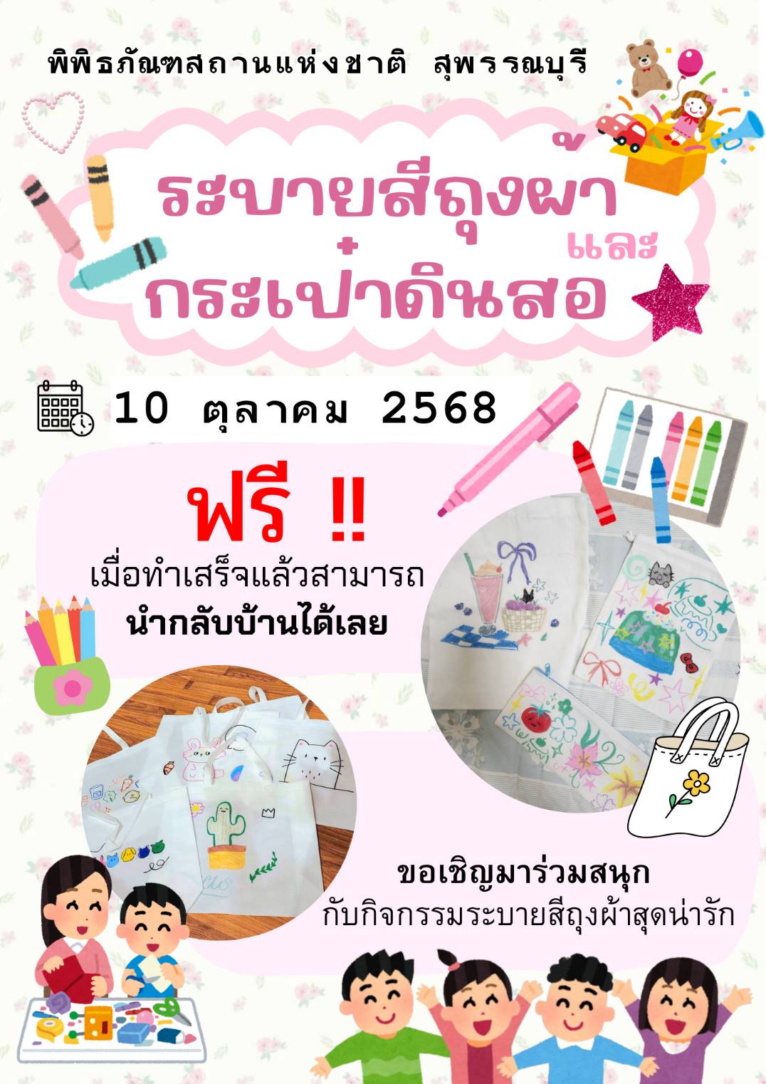 พิพิธภัณฑสถานแห่งชาติ สุพรรณบุรี ชวนร่วมสนุกกับกิจกรรม D.I.Y น่ารัก ๆ กิจกรรมพิเศษที่ให้ความเพลิดเพลินและได้ลงมือทำด้วยตัวเอง พบกับ Workshop D.I.Y ถุงผ้าเอนกประสงค์ และที่คั่นหนังสือสุดเก๋ โดยน้อง ๆ วิทยากรจิตอาสาจากโรงเรียนสาธิตแห่งมหาวิทยาลัยเกษตรศาสตร์ ผู้สนใจสามารถร่วมกิจกรรมได้ฟรี! ไม่มีค่าใช้จ่าย ในวันศุกร์ที่ 10 ตุลาคม 2568 ณ ห้องเรือนบุหงา พิพิธภัณฑสถานแห่งชาติ สุพรรณบุรี สอบถามเพิ่มเติม โทร. 0 3553 6100 Facebook พิพิธภัณฑสถานแห่งชาติ สุพรรณบุรี Suphanburi National Museum