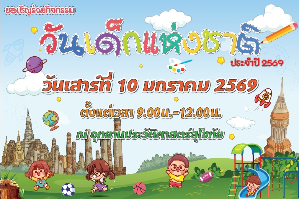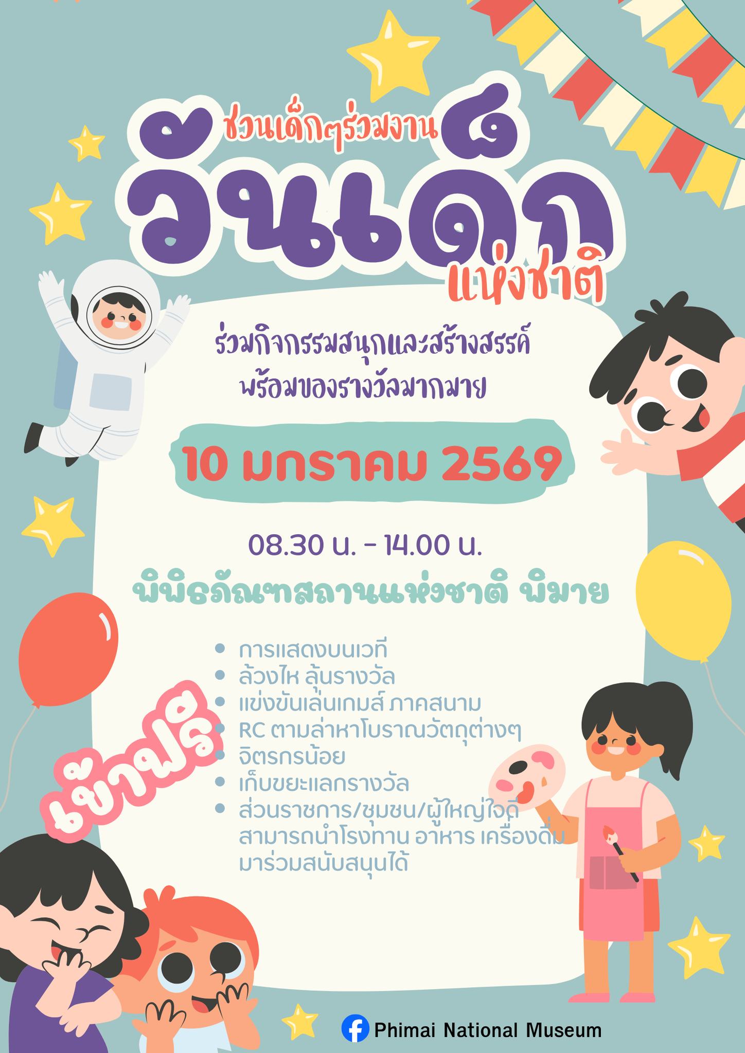ขอเชิญชวนผู้ปกครอง เด็ก ๆ และเยาวชน ร่วมกิจกรรมเนื่องในวันเด็กแห่งชาติ ประจำปี 2569 ณ หน่วยงานในสังกัดกรมศิลปากรใกล้บ้าน ติดตามรายละเอียดเพิ่มเติมได้ทางเว็บไซต์ กรมศิลปากร www.finearts.go.th