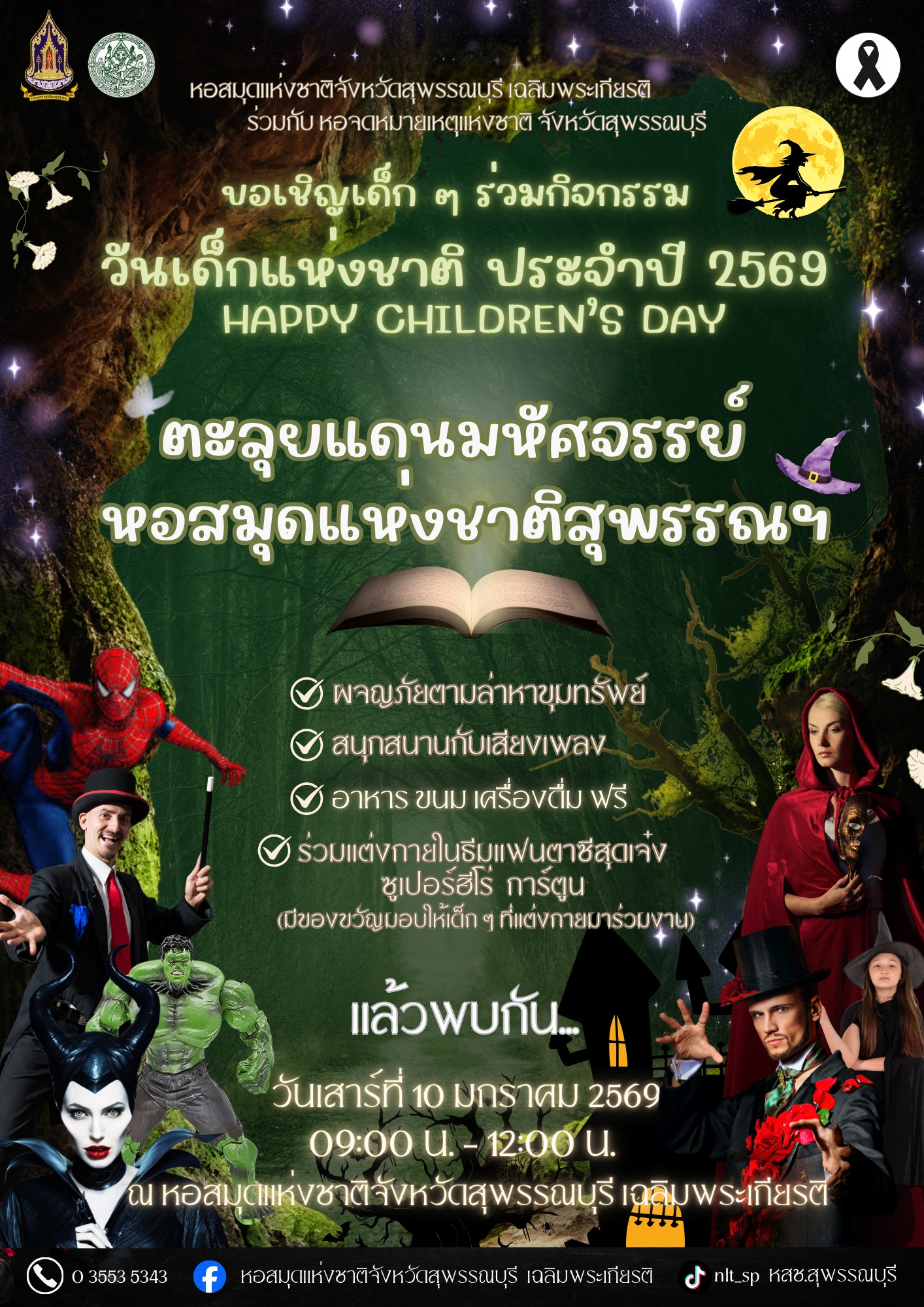 นายพนมบุตร จันทรโชติ อธิบดีกรมศิลปากร กล่าวว่า เนื่องในวันเด็กแห่งชาติ ประจำปี 2569 วันเสาร์ที่ 10 มกราคม 2569 กรมศิลปากรได้เปิดอุทยานประวัติศาสตร์ พิพิธภัณฑสถานแห่งชาติ และโบราณสถานทุกแห่งที่อยู่ในความดูแล โดยงดเก็บค่าเข้าชม พร้อมทั้งเตรียมกิจกรรมสำหรับเด็กและเยาวชน เน้นการเรียนรู้ผ่านกิจกรรมที่สร้างความสนุกสนานและหลากหลาย เพื่อให้ได้รับความรู้และเกิดความคิดสร้างสรรค์ โดยในกรุงเทพมหานคร จัดกิจกรรมหลัก ณ หอสมุดแห่งชาติ ตั้งแต่เวลา 08.00 – 14.00 น. มีหน่วยงานในสังกัด ประกอบด้วย สำนักช่างสิบหมู่ สำนักพิพิธภัณฑสถานแห่งชาติ ศูนย์เทคโนโลยีสารสนเทศมรดกศิลปวัฒนธรรม สำนักหอจดหมายเหตุแห่งชาติ สำนักหอสมุดแห่งชาติ และเครือข่าย อส.มศ. ภาษาโบราณ ร่วมจัดกิจกรรมเพิ่มทักษะการเรียนรู้ ส่งเสริมความรู้ด้านศิลปวัฒนธรรม เพื่อให้สามารถนำความรู้ไปต่อยอดพัฒนาให้เกิดประโยชน์อย่างสร้างสรรค์และยั่งยืน นอกจากนี้ ยังมีกิจกรรมที่หอสมุดแห่งชาติเขตลาดกระบัง เฉลิมพระเกียรติ และพิพิธภัณฑสถานแห่งชาติ พระนคร ให้ได้ร่วมสนุกพร้อมรับของรางวัลมากมาย