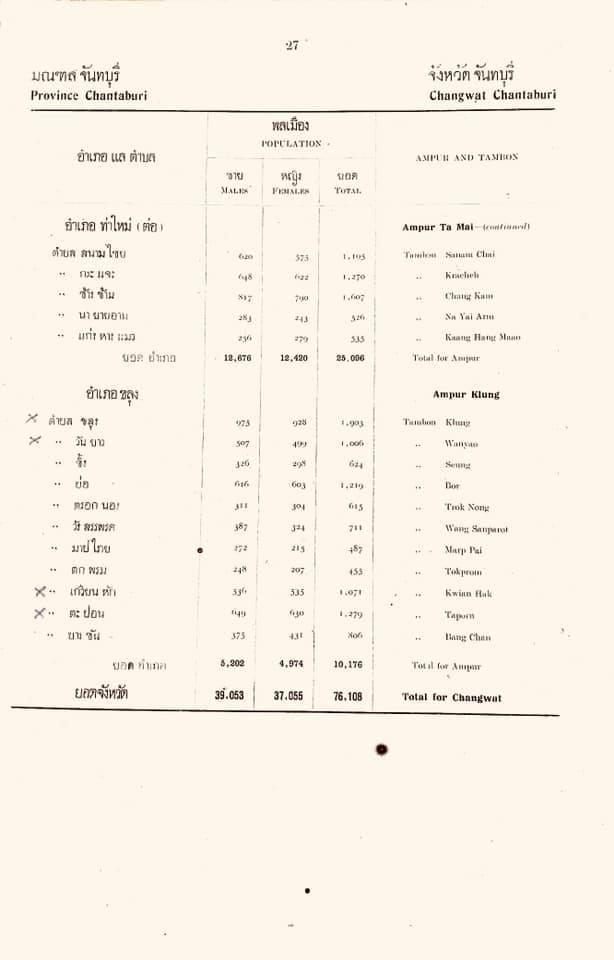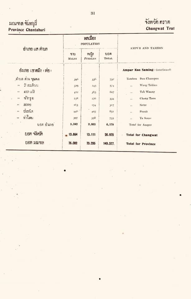 สำหรับผู้เขียนให้ความสนใจในส่วนของมณฑลจันทบุรี ว่าในช่วงนี้พลเมืองของบ้านเรามีจำนวนเท่าใด ซึ่งรวมแล้วได้ยอดทั้งมณฑลว่า