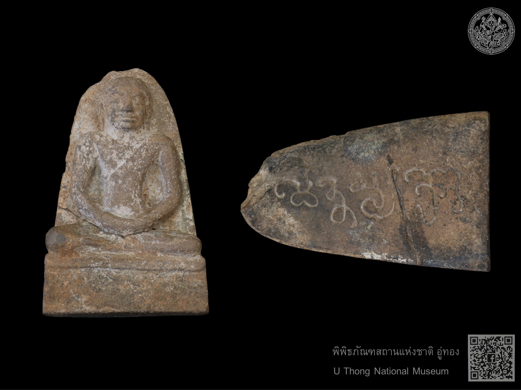 พระพิมพ์พระสาวกมีจารึก “เมตฺเตยฺยโก” จากเจดีย์หมายเลข ๑๑ เมืองโบราณอู่ทอง