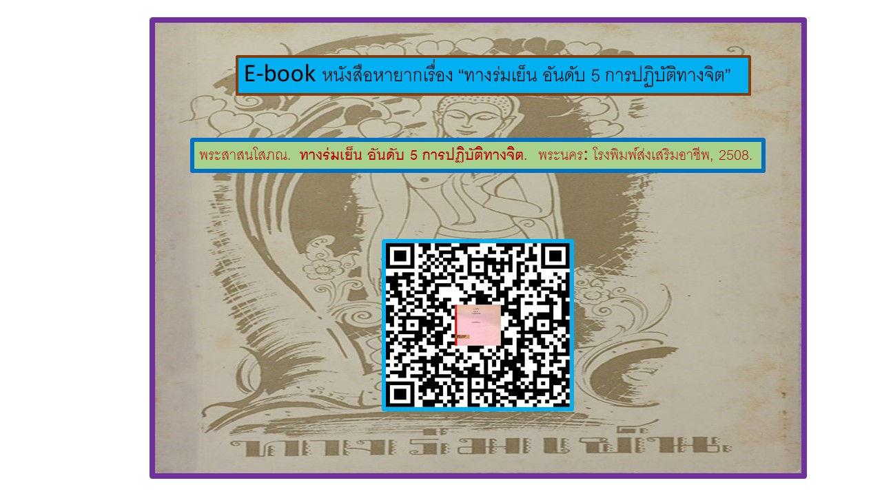 E-book หนังสือหายากเรื่อง"ทางร่มเย็น อันดับ 5 การปฏิบัติทางจิต"