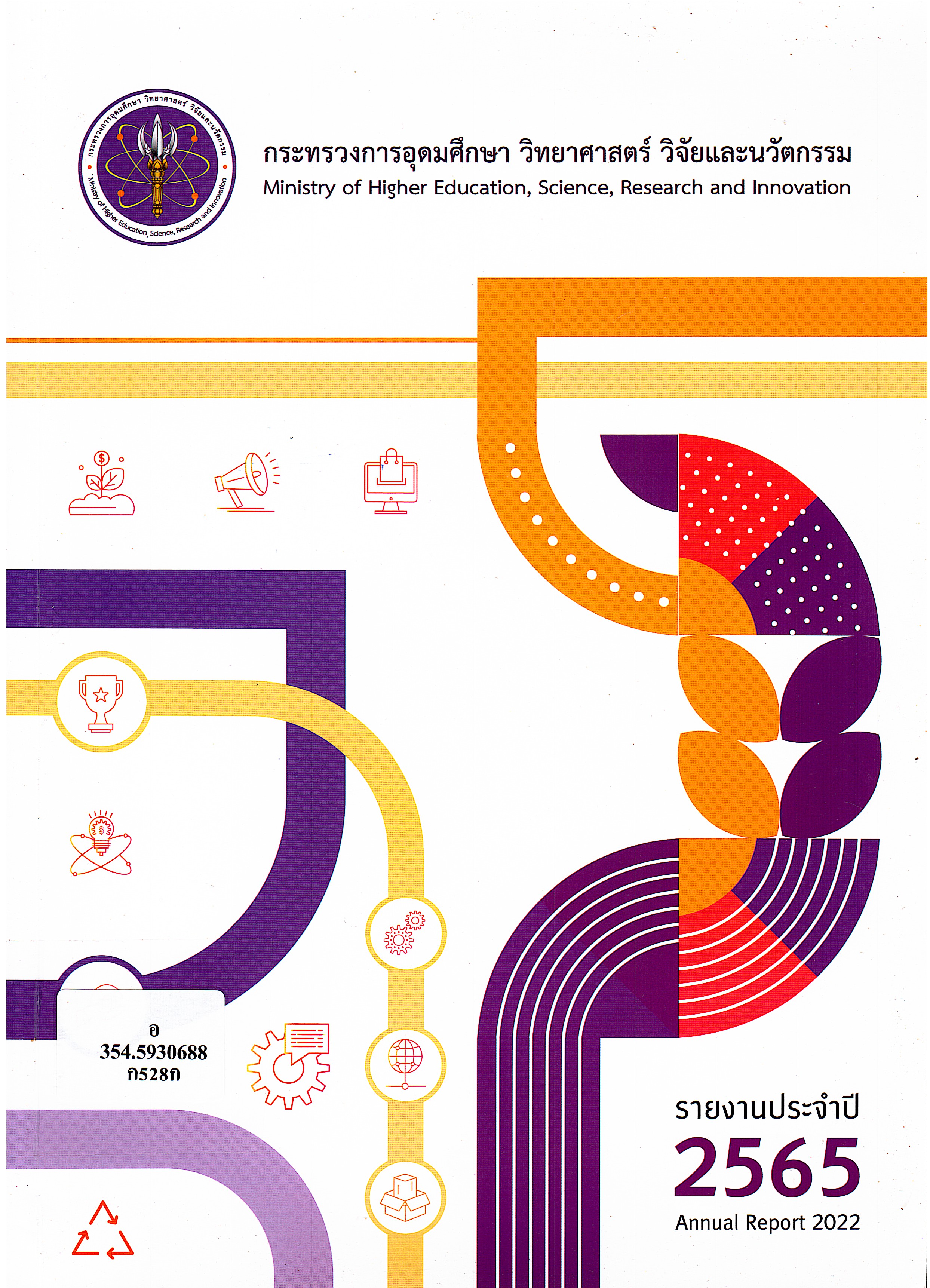 กระทรวงการอุดมศึกษา วิทยาศาสตร์ วิจัยและนวัตกรรม. รายงานประจำปี 2565 กระทรวงการอุดมศึกษา วิทยาศาสตร์ วิจัยและนวัตกรรม. กรุงเทพฯ: สำนักงานปลัดกระทรวงการอุดมศึกษา วิทยาศาสตร์ วิจัยและนวัตกรรม, 2566. 118 หน้า. ภาพประกอบ.