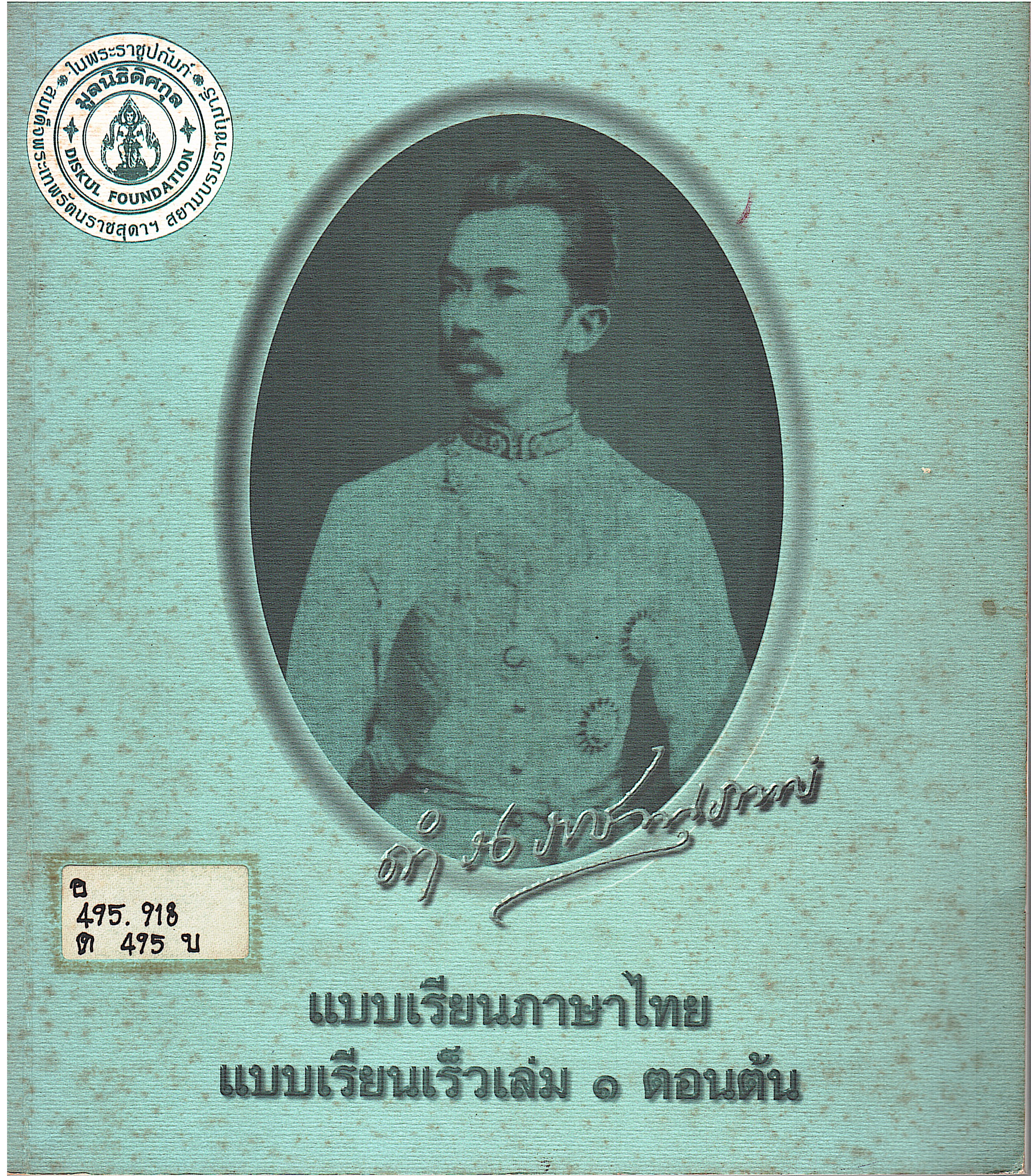 ดำรงราชานุภาพ, สมเด็จฯ กรมพระยา, 2405 – 2486. แบบเรียนภาษาไทย แบบเรียนเร็วเล่ม 1 ตอนต้น. กรุงเทพฯ : มูลนิธิดิศกุล, 2543. 97 หน้า. ภาพประกอบ.