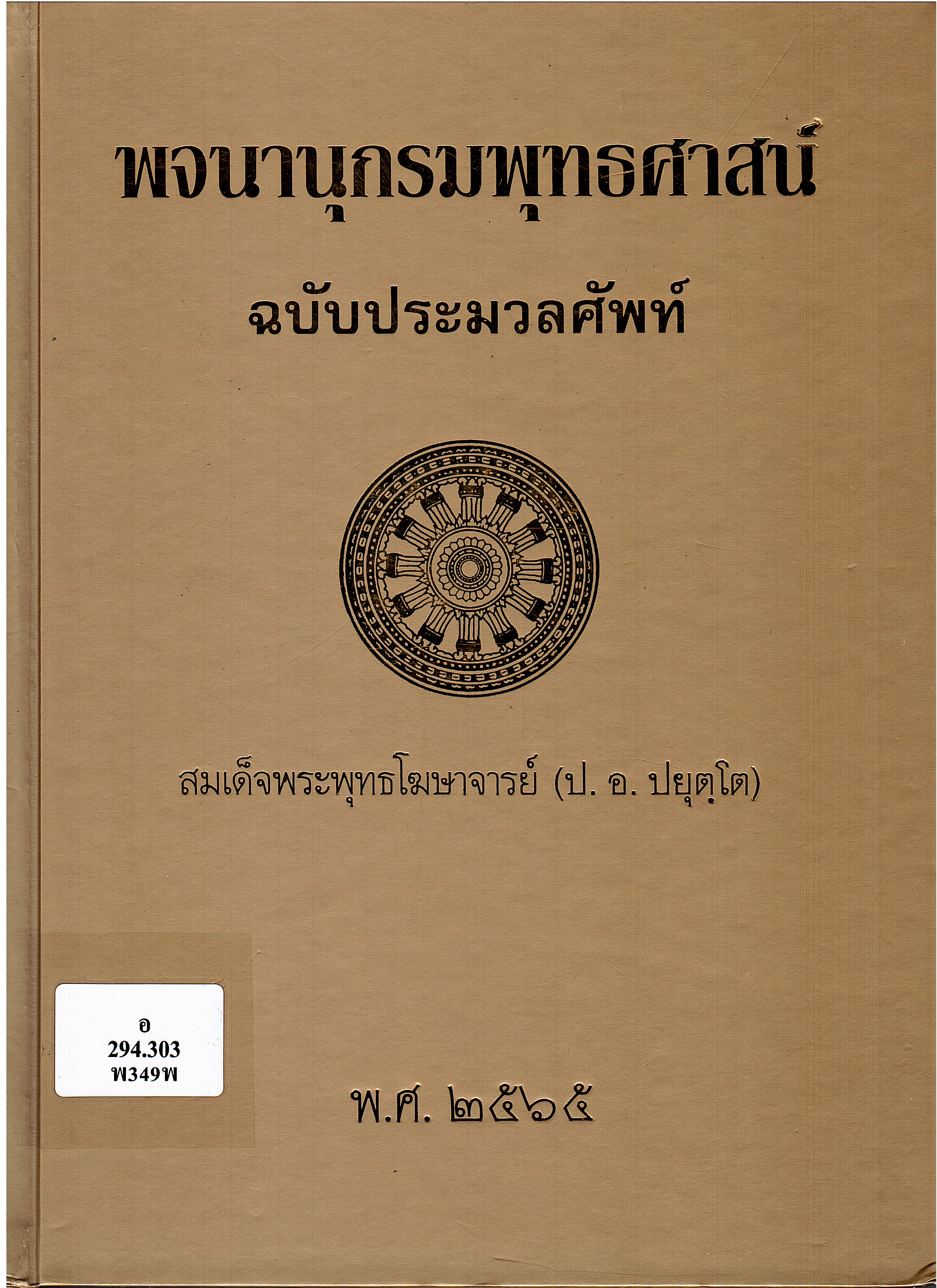 สมเด็จพระพุทธโฆษาจารย์ (ป.อ.ปยุตฺโต), 2481-. พจนานุกรมพุทธศาสน์ ฉบับประมวลศัพท์. พิมพ์ครั้งที่ 37. กรุงเทพฯ: สหธรรมิก, 2565. 307 หน้า.