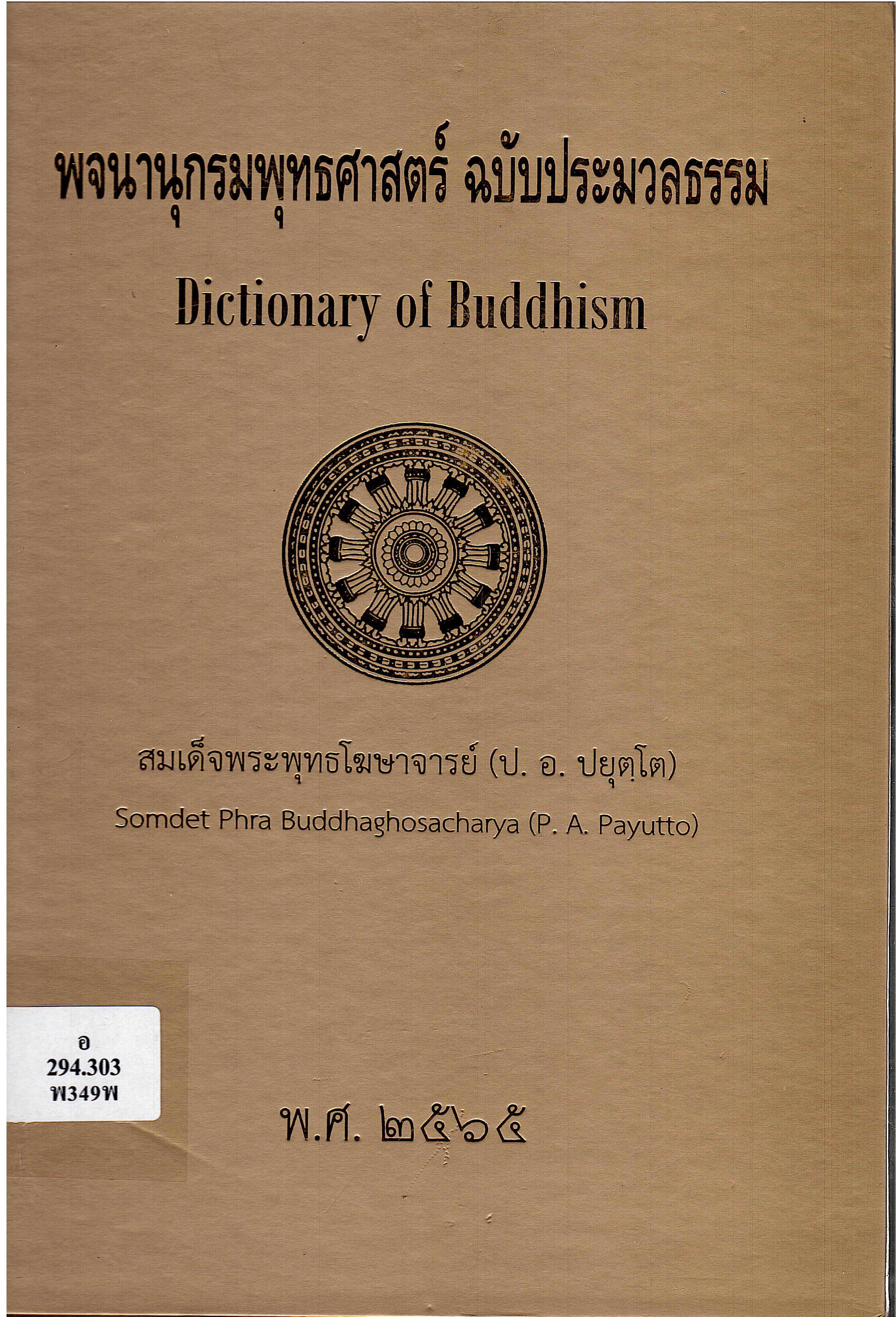 สมเด็จพระพุทธโฆษาจารย์ (ป. อ. ปยุต.โต), 2481-. พจนานุกรมพุทธศาสตร์ ฉบับประมวลธรรม. พิมพ์ครั้งที่ 45. กรุงเทพฯ: สหธรรมิก, 2565. 388 หน้า.