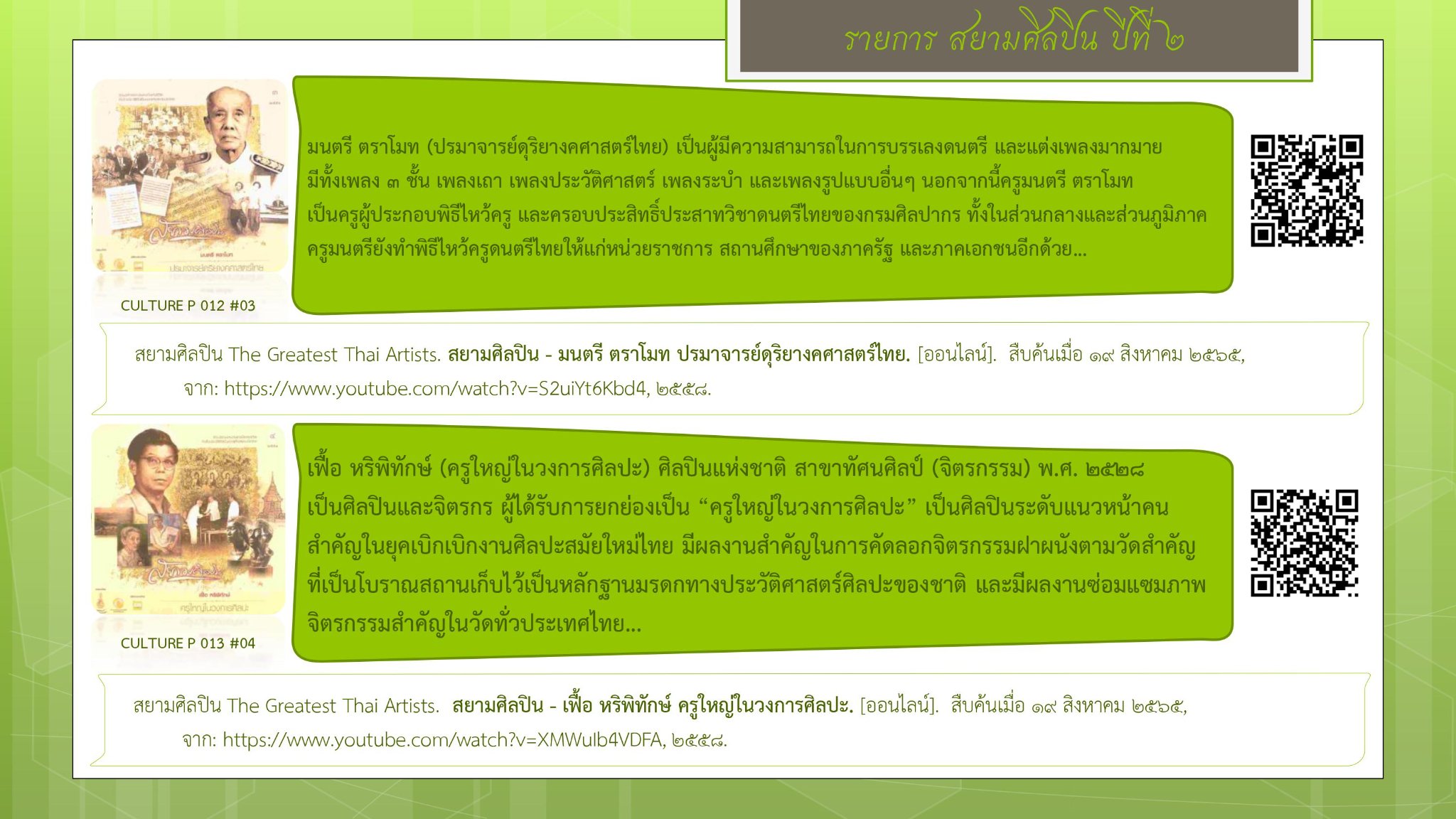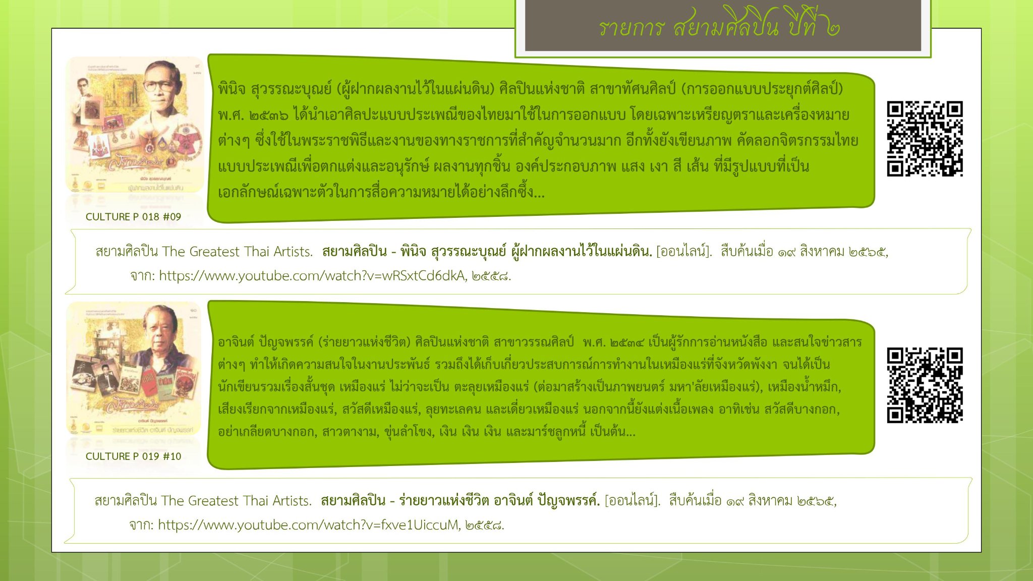 องค์ความรู้ : หอสมุดแห่งชาติรัชมังคลาภิเษก เชียงใหม่ เรื่อง รายการ สยามศิลปิน ปีที่ ๒ : สารคดีอัตชีวประวัติศิลปินไทย