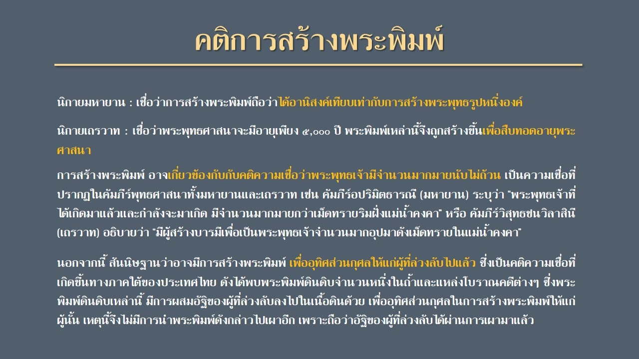๐ ด้วยความเชื่อที่ว่าเป็นหนทางที่จะได้รับกุศลผลบุญ และสืบทอดอายุพระพุทธศาสนา จึงเป็นเหตุให้มีการสร้างพระพิมพ์ขึ้น