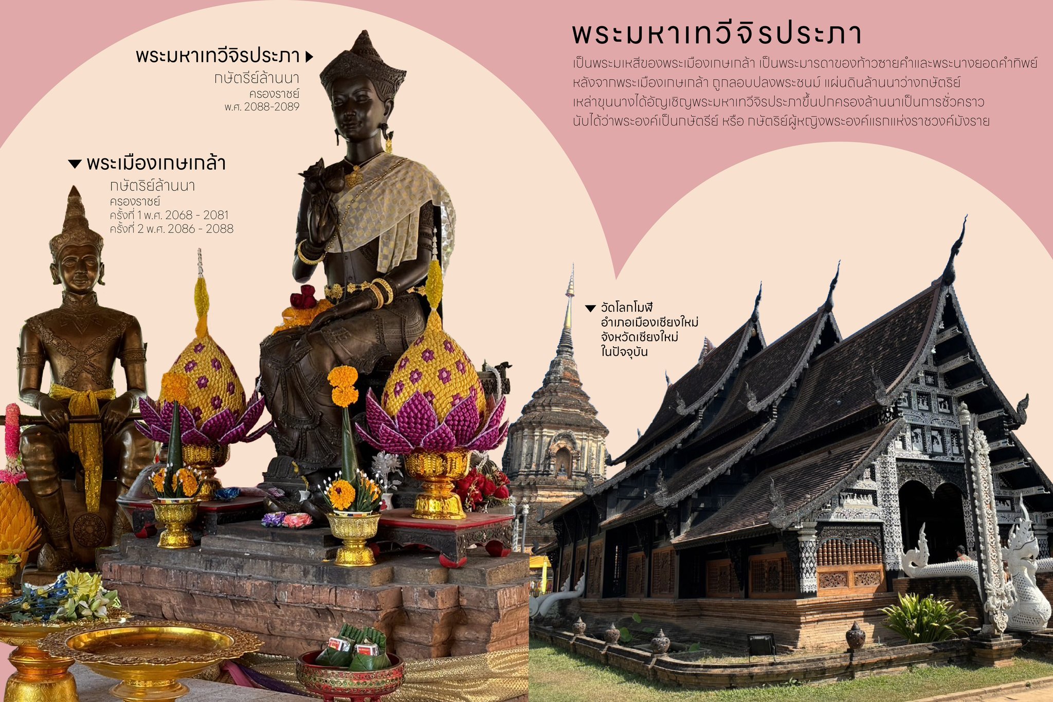 จากบทบาทในการเป็นกษัตรีย์พระองค์แรกในประวัติศาสตร์ล้านนา ปัจจุบันพระองค์ได้รับความนับถือในฐานะเทพแห่งความรักของล้านนาอีกด้วย