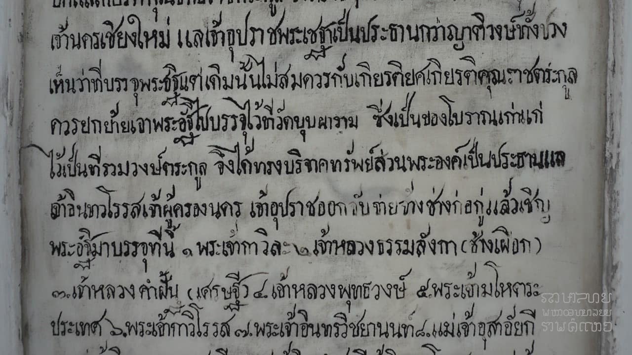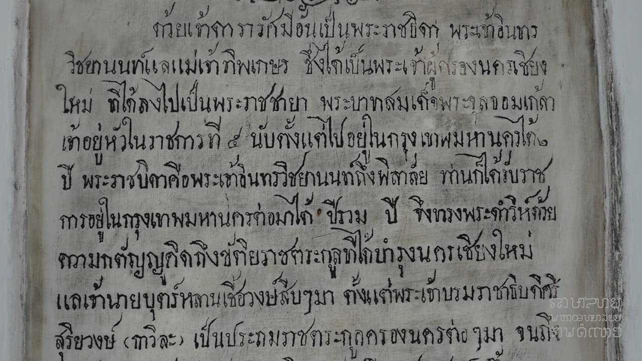 การจำลองแบบคำจารึกบนแผ่นหินอ่อนของกู่เจ้าหลวงเชียงใหม่