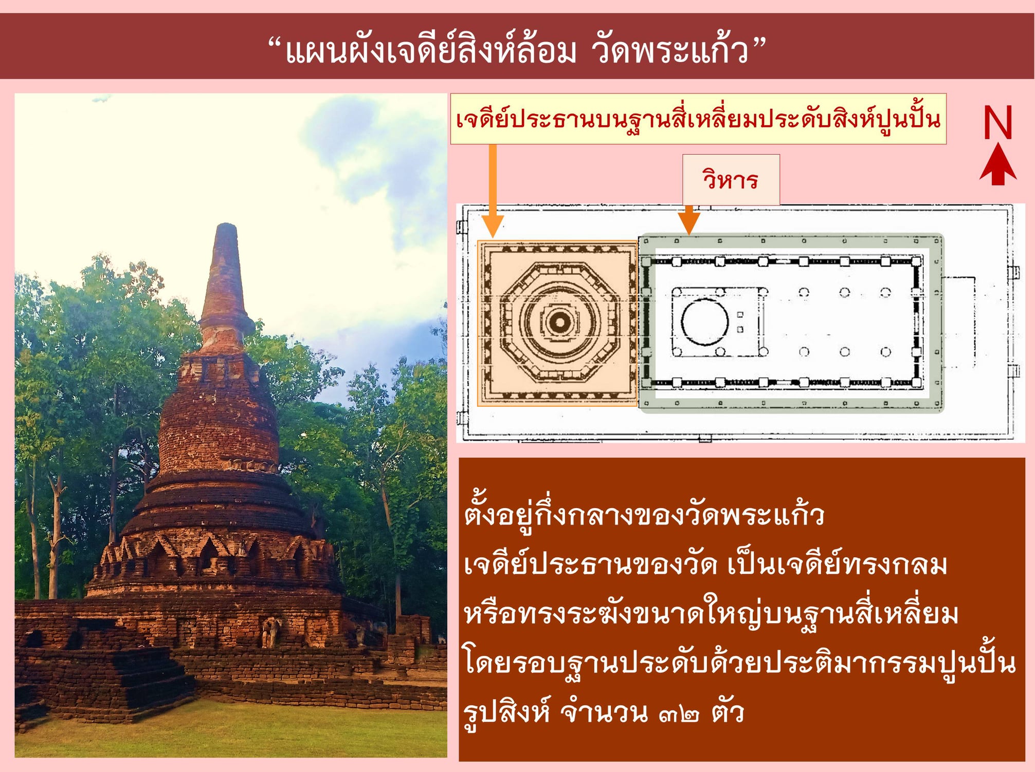 ของเจดีย์สิงห์ล้อม วัดพระแก้ว ไว้ดังนี้