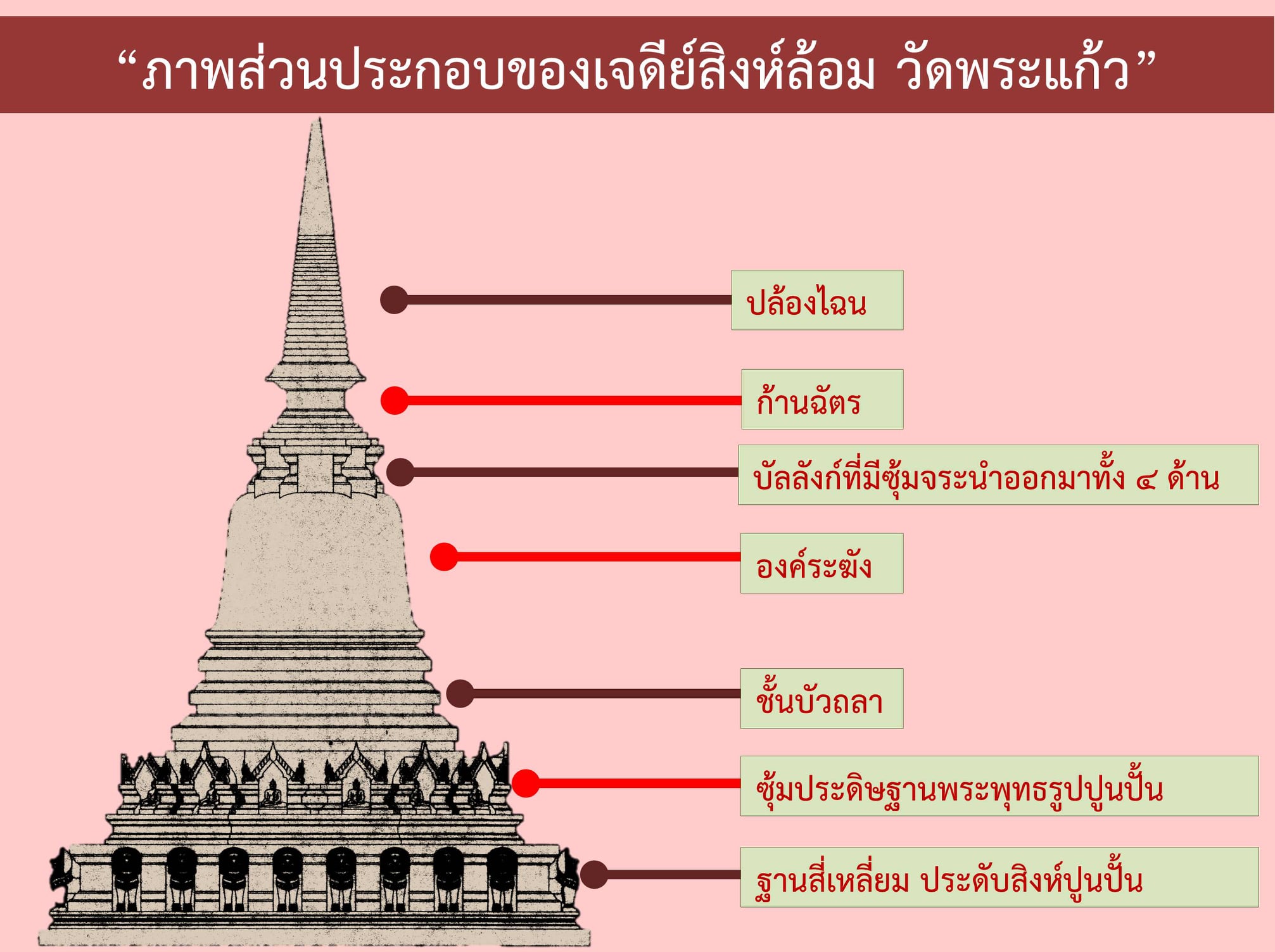 ต่อด้วยส่วนของก้านฉัตร ปล้องไฉนและปลียอด