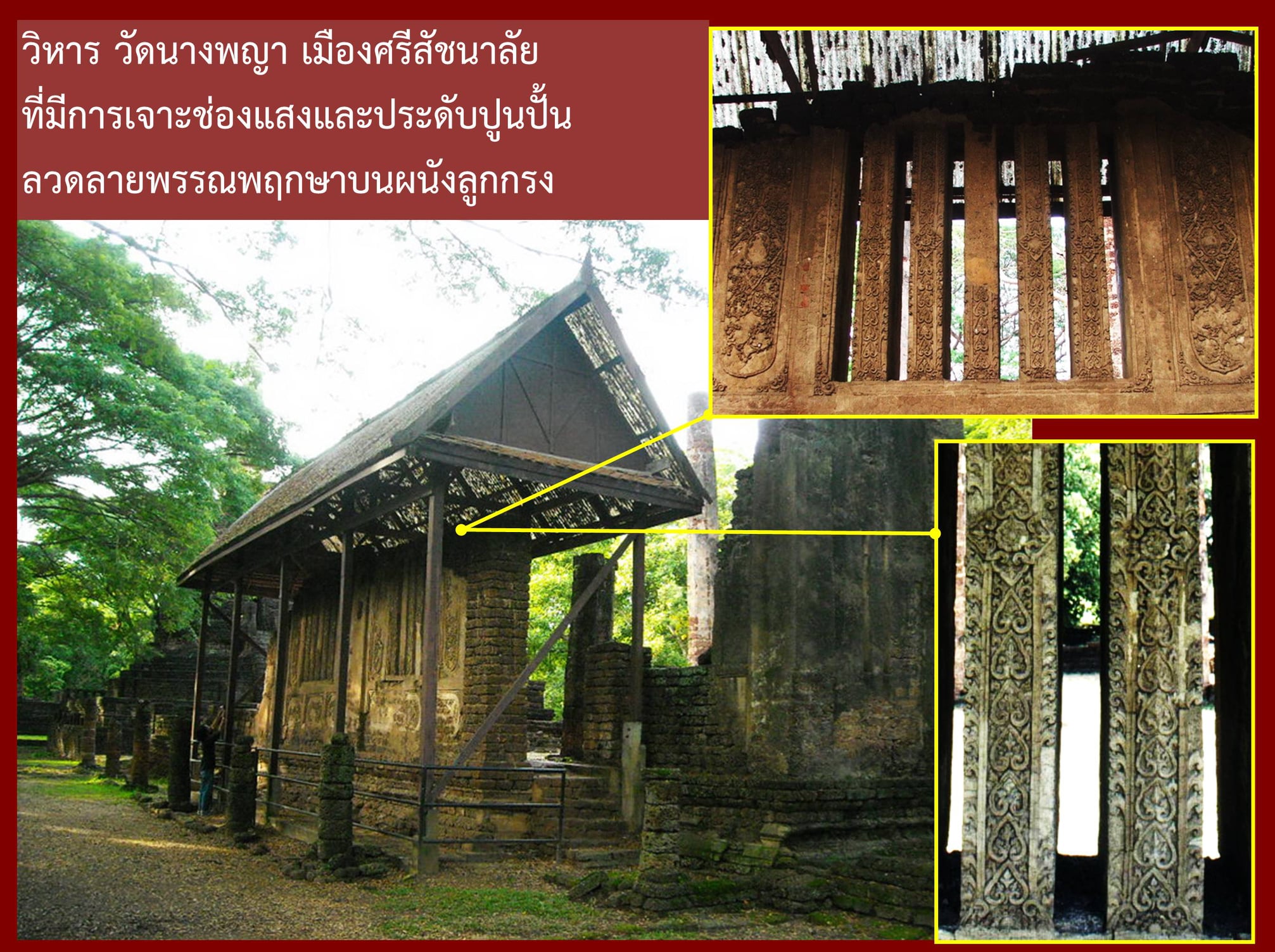 เช่น วิหารวัดนางพญาแห่งเมืองศรีสัชนาลัย ที่มีการเจาะช่องแสง