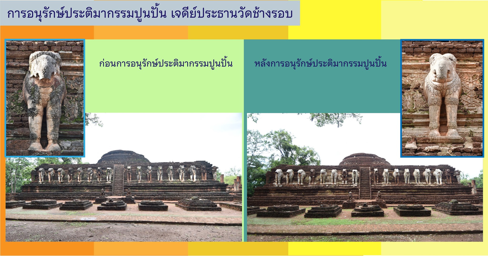 การอนุรักษ์ประติมากรรมปูนปั้นวัดช้างรอบ เมืองกำแพงเพชร