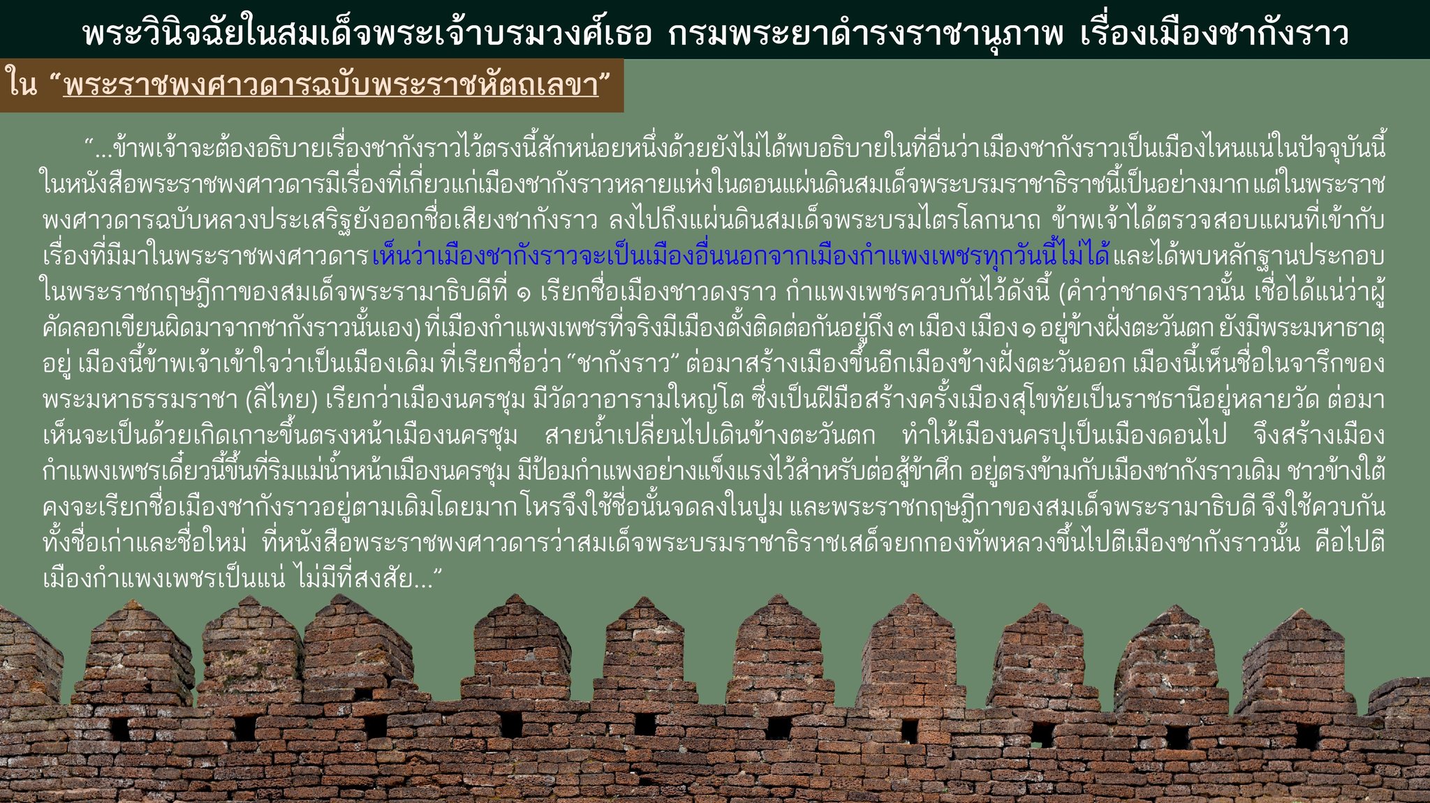 เมืองชากังราว : พระวินิจฉัยในสมเด็จพระเจ้าบรมวงศ์เธอ กรมพระยาดำรงราชานุภาพ