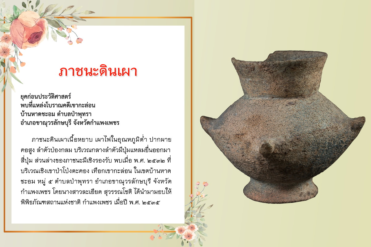 พิพิธภัณฑสถานแห่งชาติ กำแพงเพชร ได้จัดแสดงโบราณวัตถุ ศิลปวัตถุ เป็นจำนวนมาก วันนี้จึงได้ยกตัวอย่างโบราณวัตถุชิ้นเยี่ยมในพิพิธภัณฑสถานแห่งชาติ กำแพงเพชร จำนวน ๕ รายการ ซึ่งสามารถเข้ามาเยี่ยมชมได้ที่พิพิธภัณฑสถานแห่งชาติ กำแพงเพชร ทุกวันพุธ - วันอาทิตย์ เวลา ๐๙.๐๐ - ๑๖.๐๐ น. ยกเว้นวันจันทร์ วันอังคาร และวันหยุดนักขัตฤกษ์