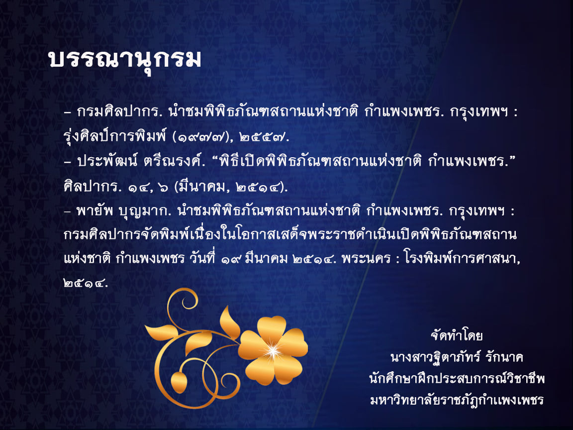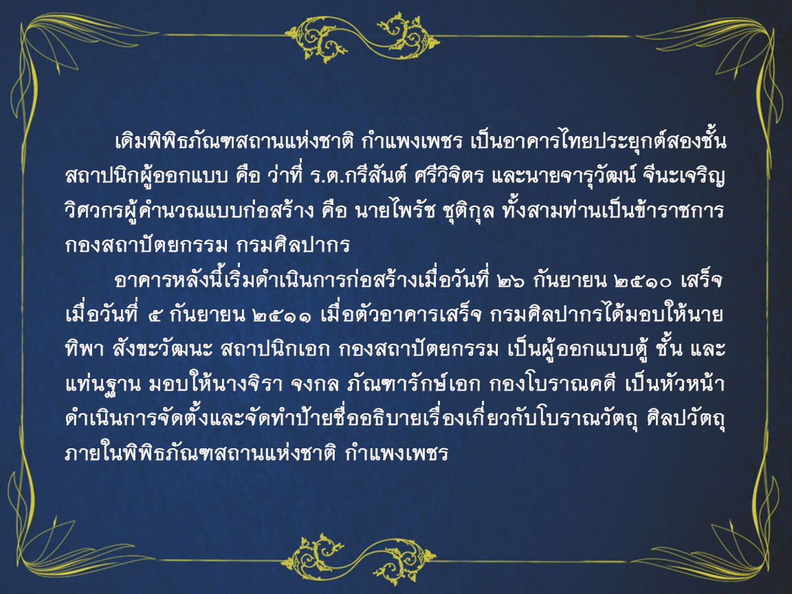 พิพิธภัณฑสถานแห่งชาติ กำแพงเพชร "๕๑ ปีแห่งการก่อตั้ง ย้อนความหลังแต่แรกเริ่ม"