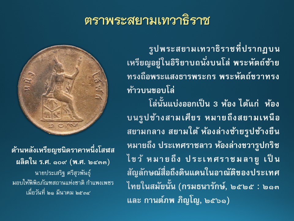 องค์ความรู้จากพิพิธภัณฑสถานแห่งชาติ กำแพงเพชร เรื่อง "เหรียญทองแดง พระบรมรูป – ตราพระสยามเทวาธิราช ในพิพิธภัณฑสถานแห่งชาติ กำแพงเพชร"