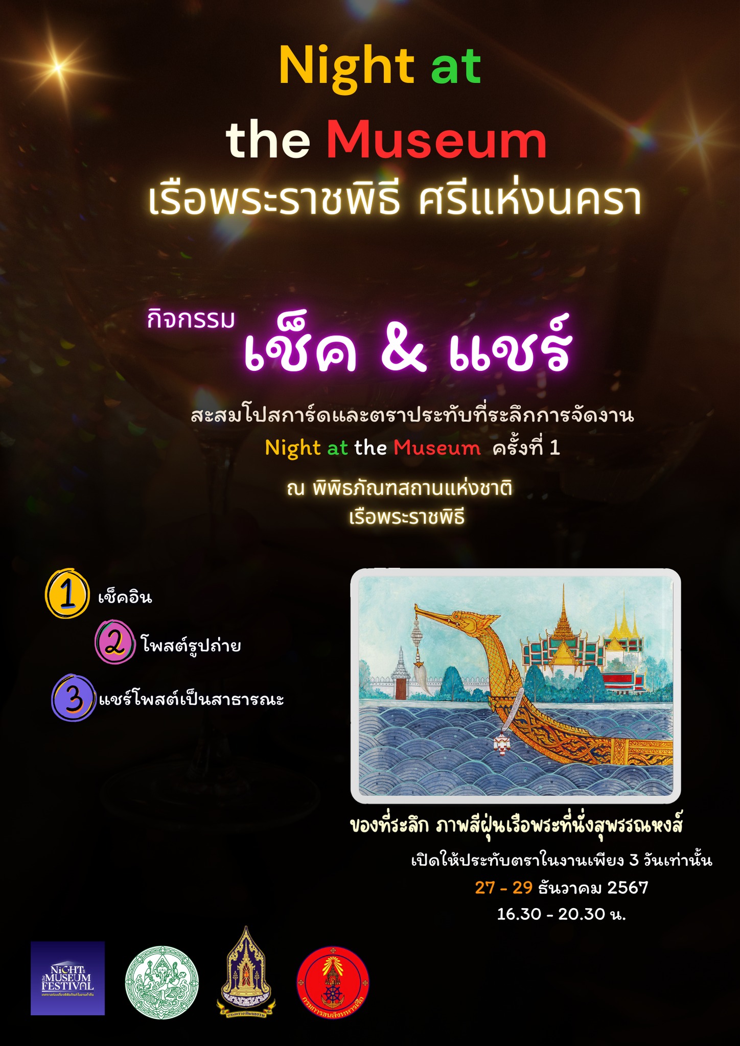 เทศกาลท่องเที่ยวพิพิธภัณฑ์ยามค่ำคืน เรือพระราชพิธีศรีแห่งนครา Night at the Museum 27-29 ธันวาคม 2567