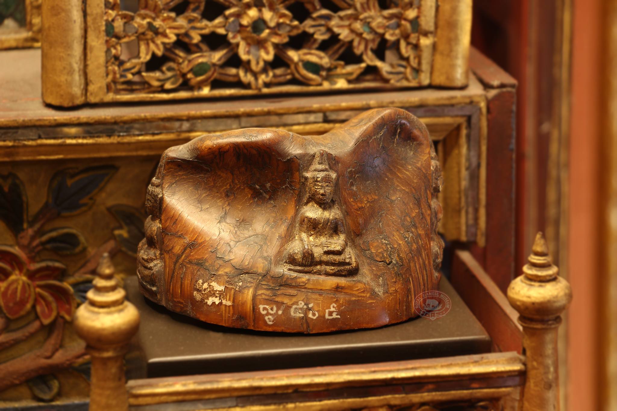 เขาโคคุดจำหลักรูปพระพุทธรูปปางมารวิชัยไว้สามด้าน ฐานเขากลม เขามีส่วนโค้งเว้า ปลายคดงอ พระพุทธรูปมีพุทธลักษณะ พระรัศมีทรงกรวยขนาดใหญ่ อุษณีษะนูน พระเศียรเรียบ พระเนตรปิด พระนาสิกโด่ง พระวรกายครองจีวรห่มเฉียง ชายสังฆาฏิยาวจรดพระนาภี ประทับขัดสมาธิราบ ไม่ปรากฏประวัติที่มาของเขาโค แต่จากบัญชีโบราณวัตถุ “บาญชีสิ่งของพิพิธภัณฑ์ในศก ๑๑๖” (พ.ศ. ๒๔๔๐) ระบุไว้ว่า “[รายการที่] ๑๒๔ เฃางัวแกะเป็นพระติดกัน ๓ องค์ [จำนวน] ๑ องค์”