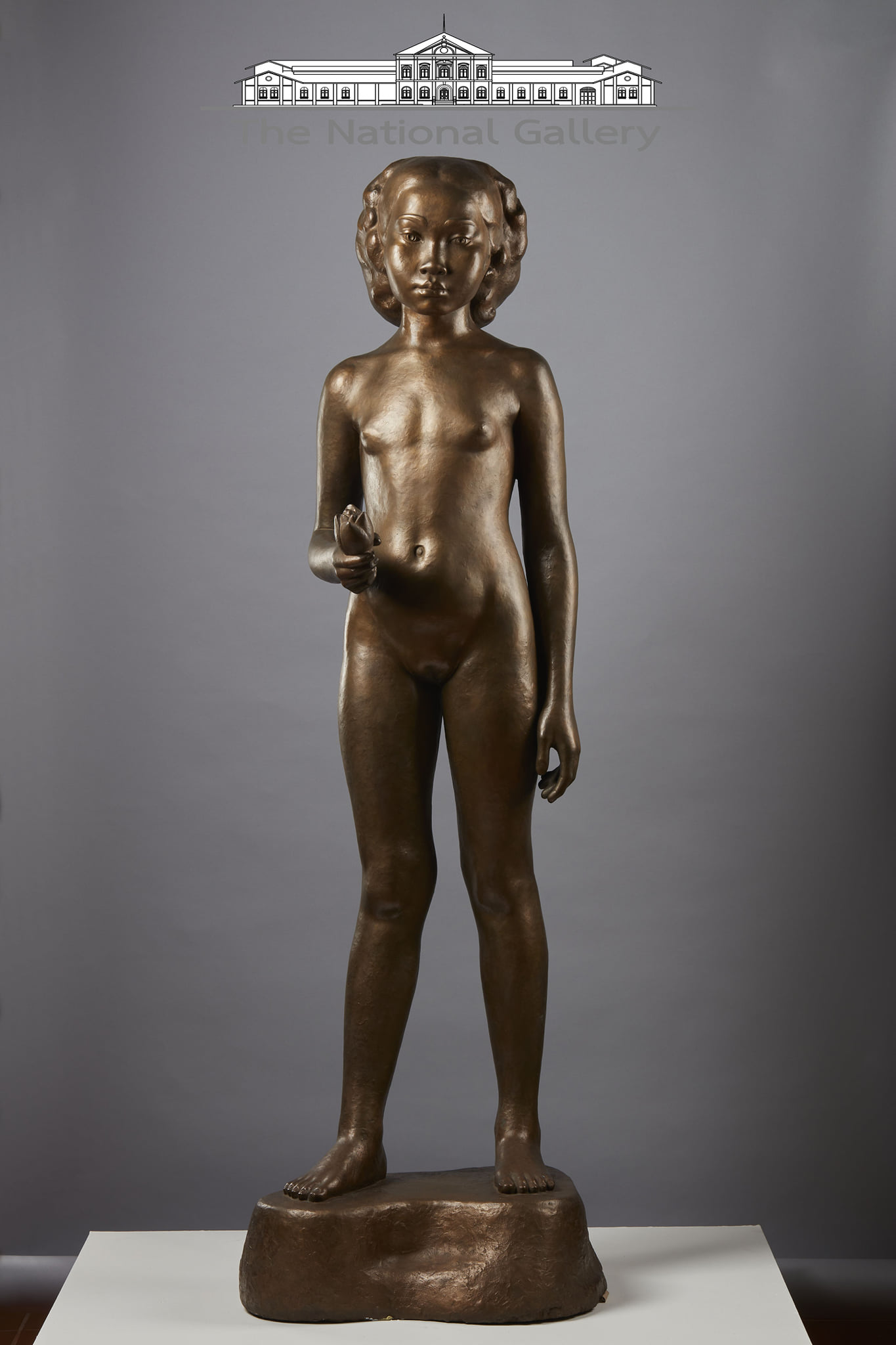 Details: Sawang Songmangmee, a talented sculptor who is considered as among early pupils of Corrado Feroci (Silpa Bhirasri). He is also regarded as a pioneer sculptor on realist trend around 1940s. Malee Rak Yaem (sproted flower) represents a nude girl in which her body suggested a stage of transformation from a girl to adolescent. A flower (lotus bud) that a girl holds onto her right hand, is symbolized as a metaphor of sprouted flower. A group of nude sculptures by an artist, drew a lot of public attention and criticisms by the time they were created because Thai people in those days was still not familiar on artistic expressions of modern art.