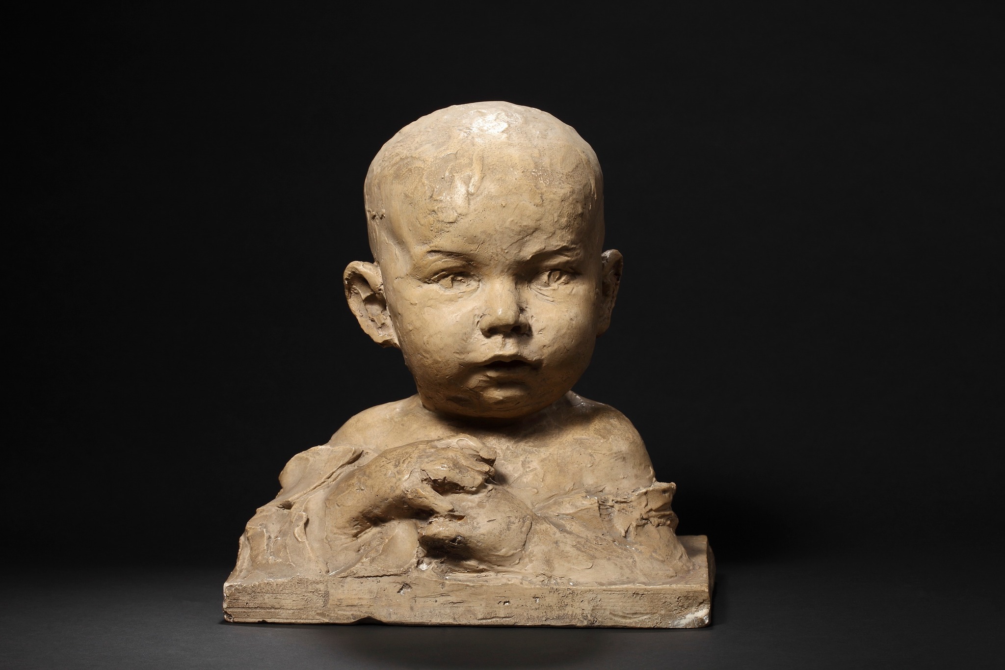 โรมาโน วิเวียนี (Romano Viviani) เป็นบุตรชายเพียงคนเดียวของ ศาสตราจารย์ศิลป์ พีระศรี กับแฟนนี่ วิเวียนี เกิดเมื่อ พ.ศ. 2470 ที่ประเทศไทย ภายหลังจากที่อาจารย์ศิลป์เดินทางมารับราชการที่ประเทศไทยได้ 4 ปี รูปปั้นโรมาโนเป็นผลงานที่อาจารย์ศิลป์ปั้นไว้ราว พ.ศ. 2471 ขณะที่โรมาโนมีอายุได้ 1 ขวบ ต่อมาเมื่อ พ.ศ. 2481 โรมาโนเดินทางกลับไปเรียนหนังสือที่เมืองฟลอเรนซ์ ประเทศอิตาลี และได้นำรูปปั้นชิ้นนี้กลับไปด้วย โดยไม่ได้กลับมาประเทศไทยอีกเลยจนกระทั่งพ่อของเขาถึงแก่กรรม ต่อมามีลูกศิษย์อาจารย์ศิลป์คนหนึ่งได้ดั้นด้นค้นหาบ้านของอาจารย์ศิลป์ที่เมืองฟลอเรนซ์จนพบ และได้เชิญชวนให้โรมาโนกลับมาเยี่ยมประเทศไทยอีกครั้ง โรมาโนจึงได้มอบรูปปั้นชิ้นนี้ไว้ให้พิพิธภัณฑสถานแห่งชาติ ศิลป์ พีระศรี อนุสรณ์ เพื่อจัดแสดงต่อไป รูปปั้นชิ้นนี้หล่อด้วยปูนปลาสเตอร์ มีสีขาวนวล อาจารย์ศิลป์สร้างสรรค์ในรูปแบบเหมือนจริง อย่างศิลปะตามหลักวิชาการแบบตะวันตก (Western Academic Art) ซึ่งเป็นรูปแบบการสร้างสรรค์งานประติมากรรมที่อาจารย์ศิลป์มีความเชี่ยวชาญและได้พยายามถ่ายทอดให้นักเรียนศิลปะชาวไทยในสมัยนั้นสามารถสร้างสรรค์ได้อย่างชาวตะวันตก