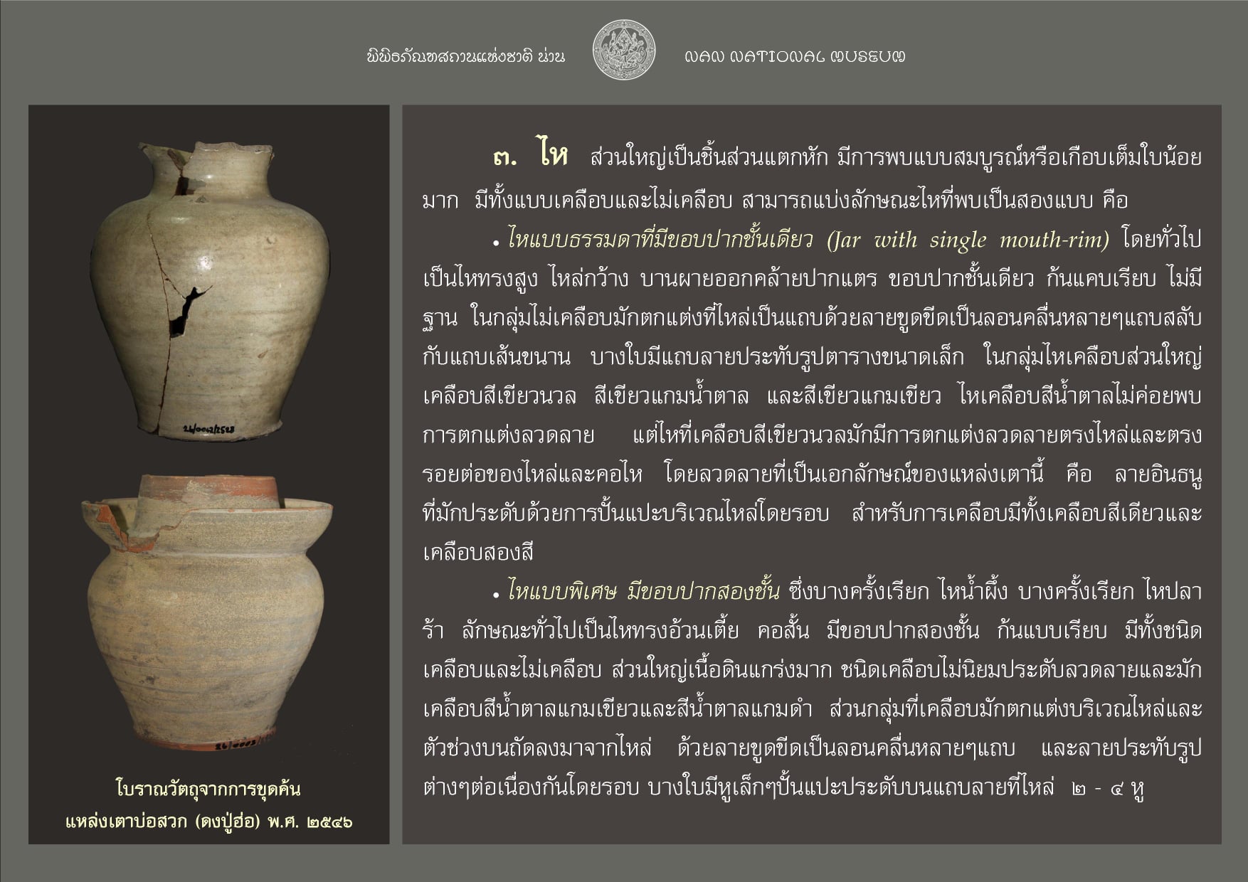 แหล่งเตาบ่อสวก ตอนที่ ๒ เอกลักษณ์เครื่องปั้นดินเผาเมืองน่าน
