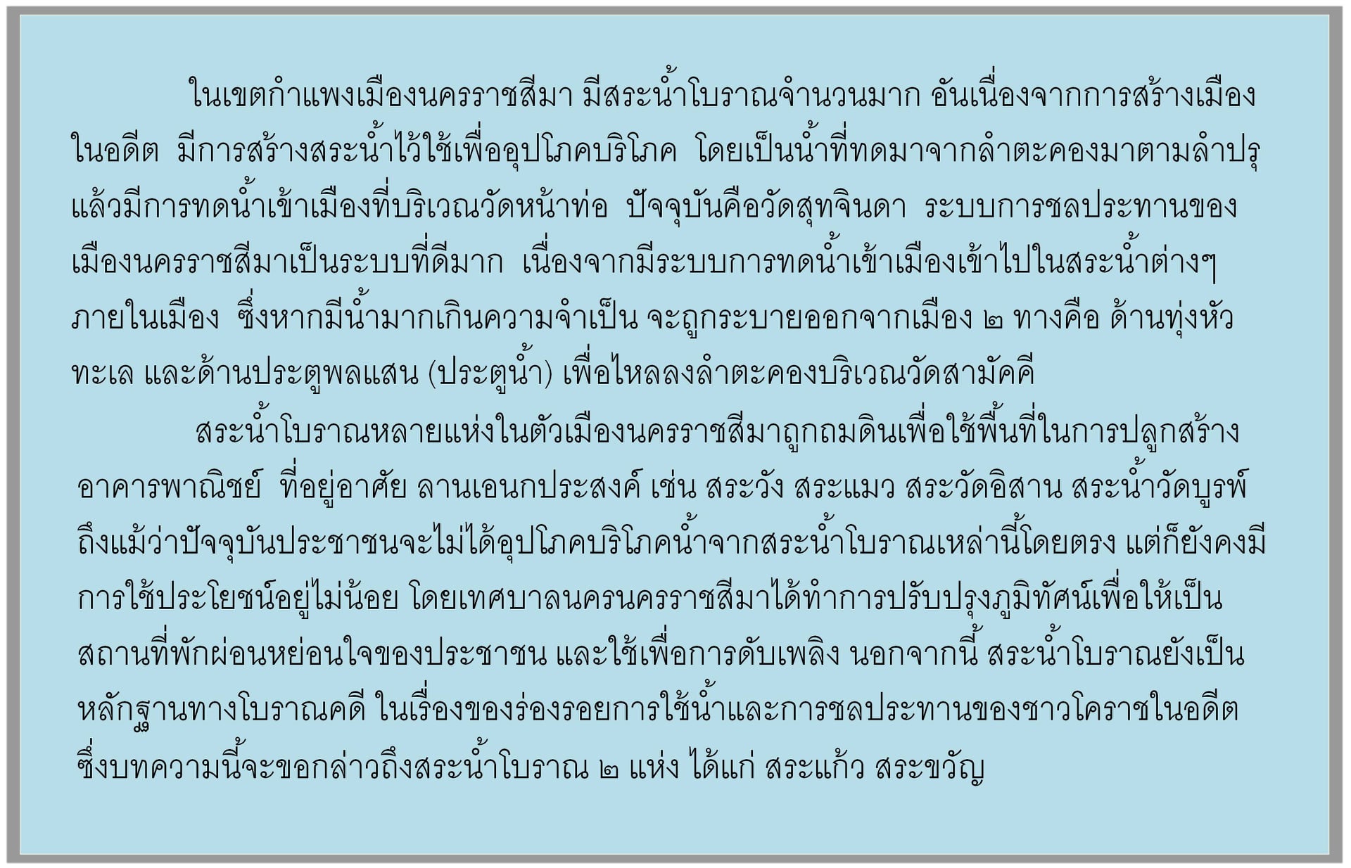 องค์ความรู้ เรื่อง สระแก้ว สระขวัญ : สระน้ำโบราณเมืองโคราช
