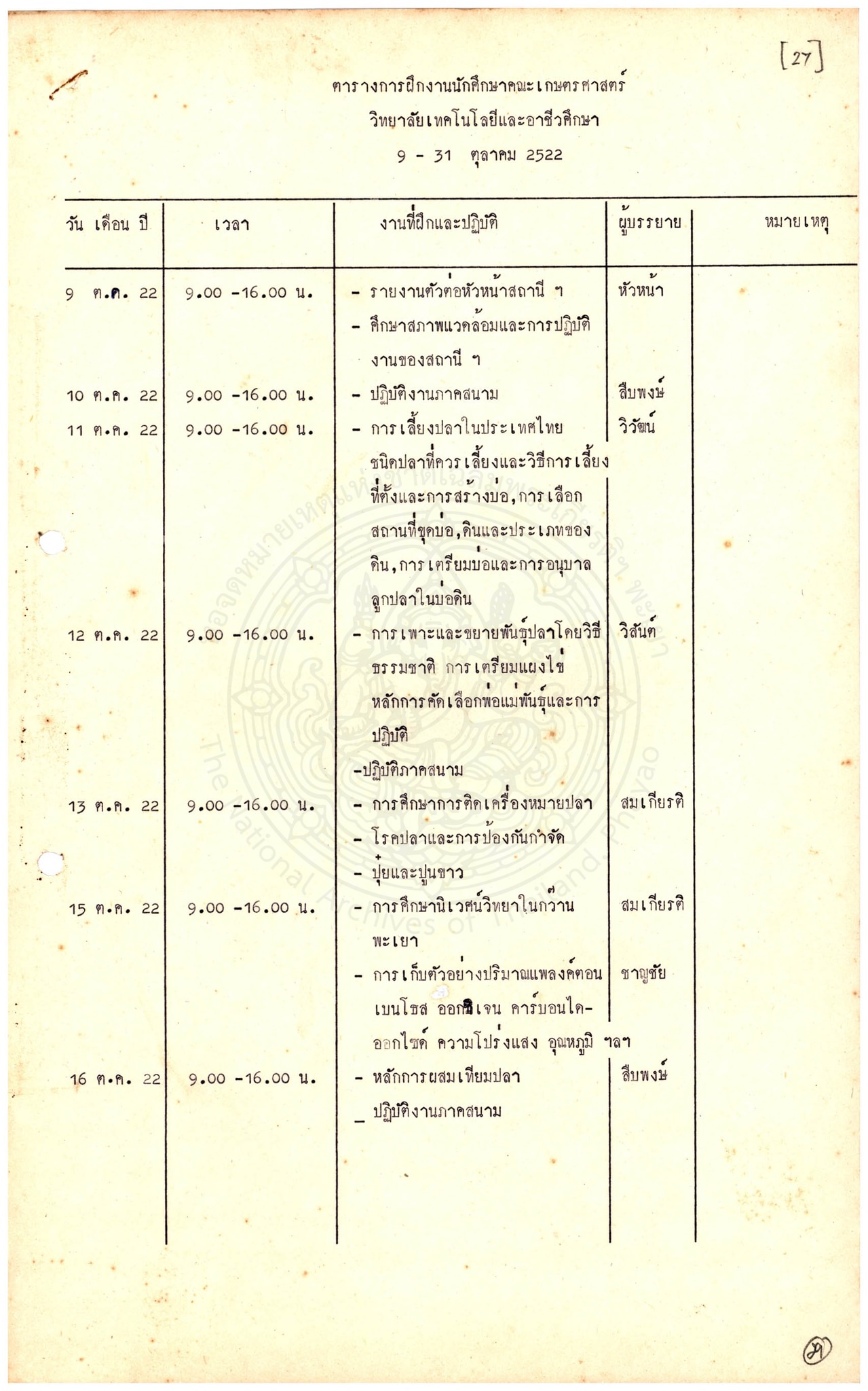 หอจดหมายเหตุแห่งชาติเฉลิมพระเกียรติฯ พะเยา. เอกสารสถานีประมงน้ำจืดจังหวัดพะเยา (2) กษ 1.1.1.1/3 เรื่อง นักศึกษาและครูขอเข้าฝึกงานที่สถานีประมงพะเยา [ 25 พ.ค. 2508 - 11 พ.ย. 2526 ].