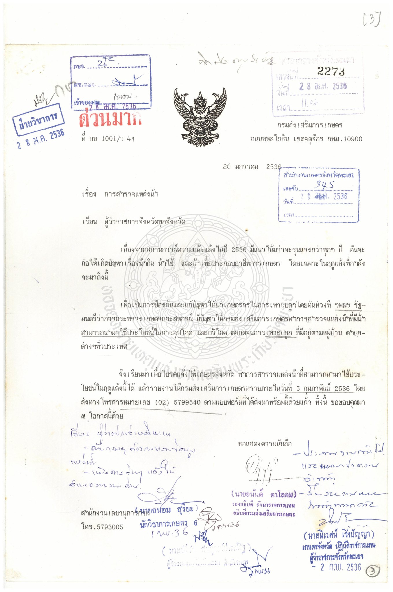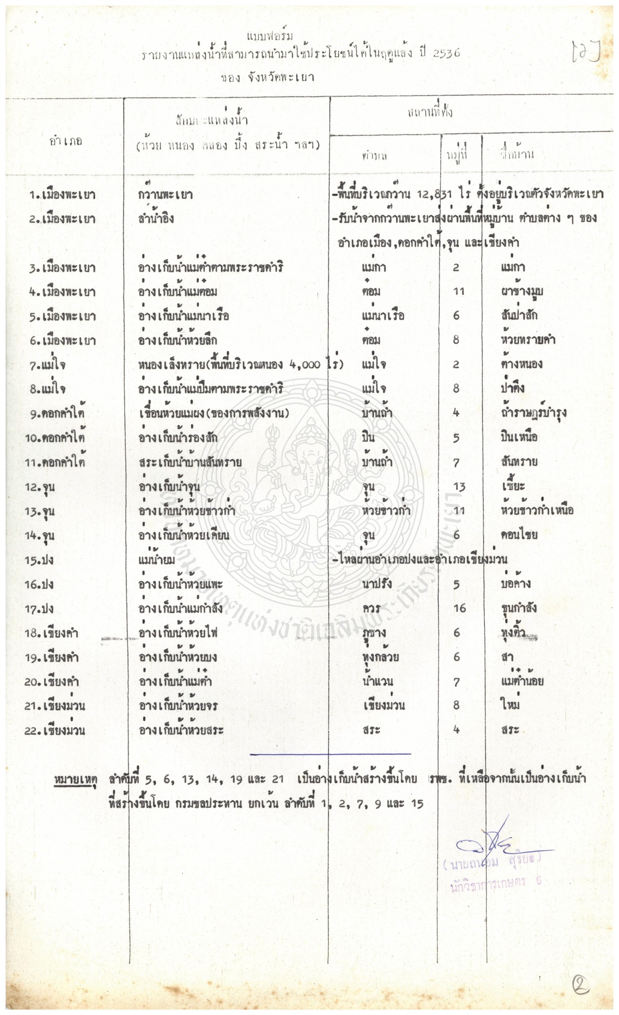 หอจดหมายเหตุแห่งชาติเฉลิมพระเกียรติฯ พะเยา. เอกสารสำนักงานเกษตรจังหวัดพะเยา พย 1.13.1/24 เรื่อง การสำรวจแหล่งน้ำที่สามารถนำมาใช้ประโยชน์ได้ในฤดูแล้งปี 2536 [ 26 ม.ค. - 3 ก.พ. 2536 ].