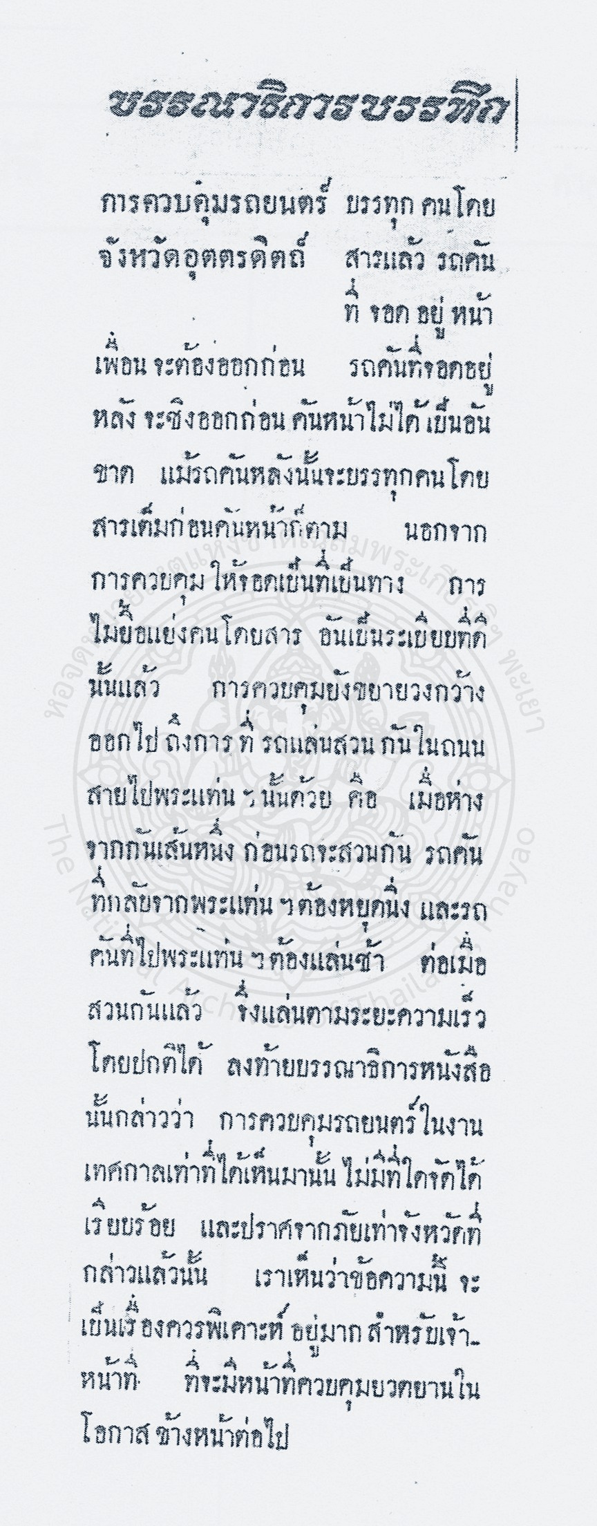 -- องค์ความรู้จากเอกสารจดหมายเหตุ : จัดระเบียบการจราจรที่อุตรดิตถ์ --