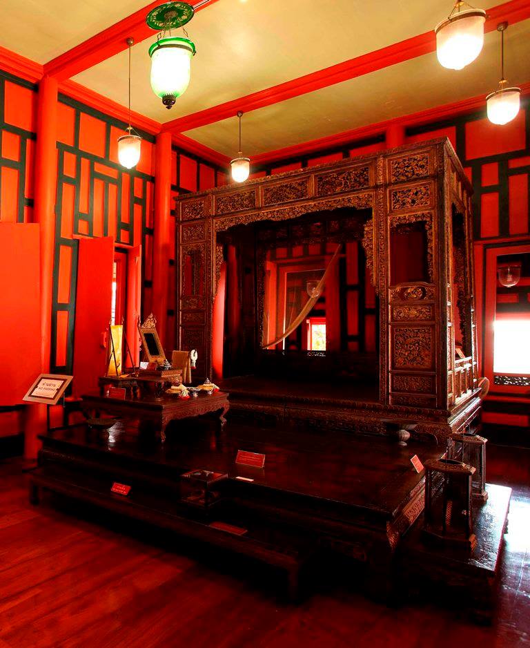 ภาพ : พระแท่นบรรทมของสมเด็จพระศรีสุริเยนทราบรมราชินี ในรัชกาลที่ ๒ แท่นเบื้องหน้าพระแท่นบรรทมคือพระแท่นลด จัดแสดงที่พิพิธภัณฑสถานแห่งชาติ พระนคร