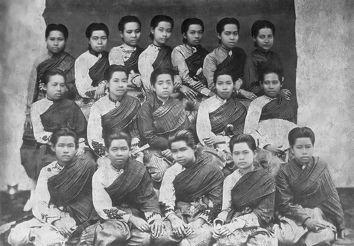 ภาพ : จากซ้ายไปขวา แถวหลัง พระเจ้าบรมวงศ์เธอ พระองค์เจ้าอรไทยเทพกัญญา, พระเจ้าบรมวงศ์เธอ พระองค์เจ้ากนกวรรณเลขา, พระเจ้าบรมวงศ์เธอ พระองค์เจ้าวาณีรัตนกัญญา, พระเจ้าบรมวงศ์เธอ พระองค์เจ้าบุษบันบัวผัน, พระเจ้าบรมวงศ์เธอ พระองค์เจ้ามัณยาภาธร, พระเจ้าบรมวงศ์เธอ พระองค์เจ้าอรุณวดี และพระเจ้าบรมวงศ์เธอ พระองค์เจ้าอนงค์นพคุณ