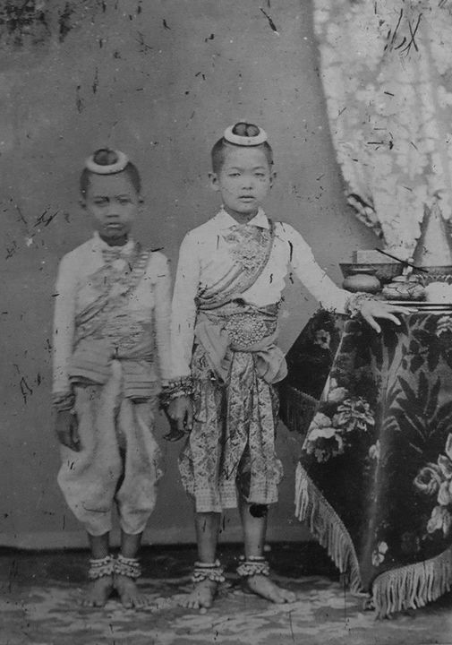 ภาพ : พระราชโอรสในพระบาทสมเด็จพระจอมเกล้าเจ้าอยู่หัว รัชกาลที่ ๔ ที่ประสูติแต่เจ้าจอมมารดาตลับ พระสนมเอก จากซ้ายไปขวา พระองค์เจ้ากาพย์กนกรัตน์ และพระองค์เจ้าทวีถวัลยลาภ