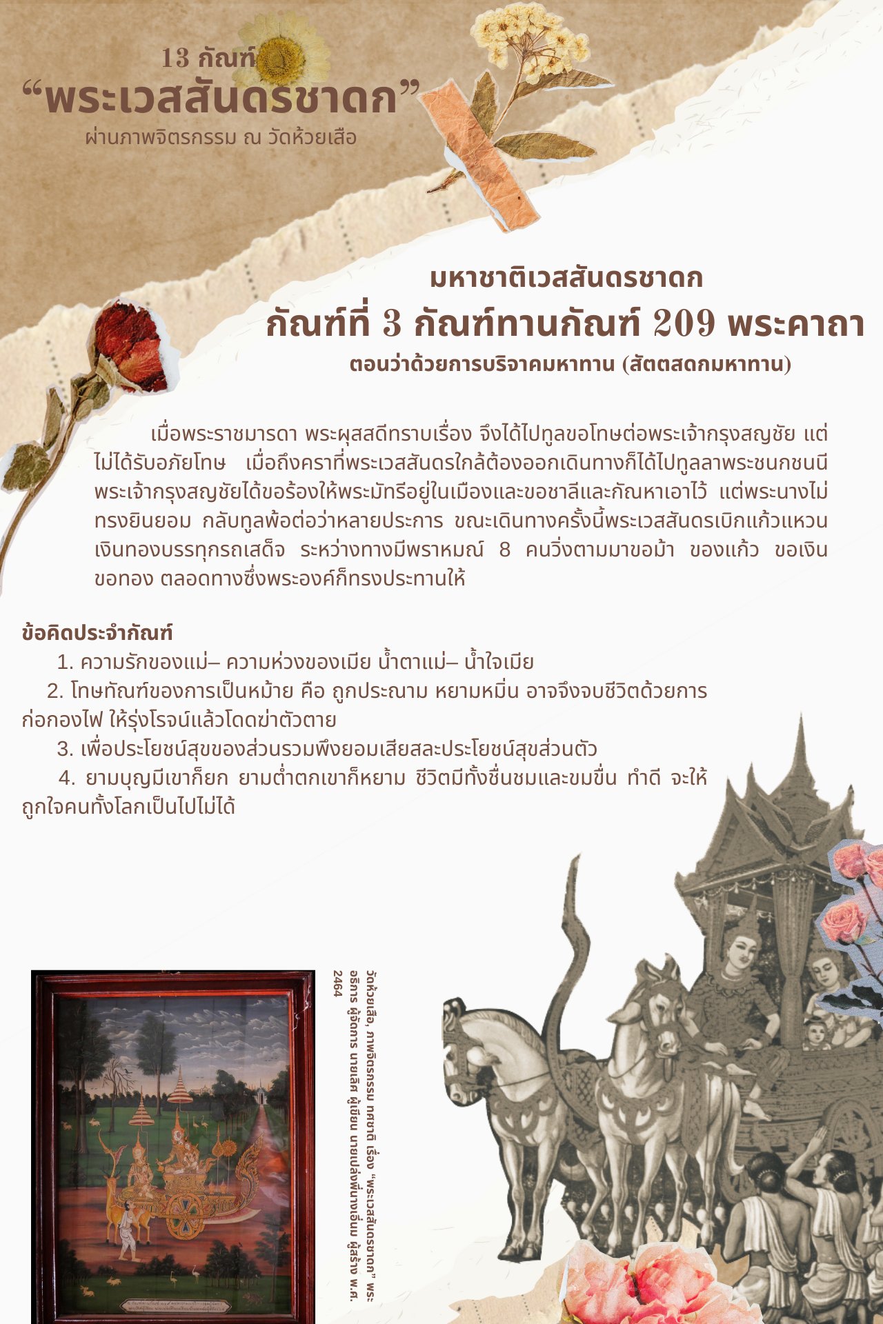 13 กัณฑ์ “พระเวสสันดรชาดก” ผ่านภาพจิตรกรรม ณ วัดห้วยเสือ ตอน กัณฑ์ที่ 3 ทานกัณฑ์ 209 พระคาถา