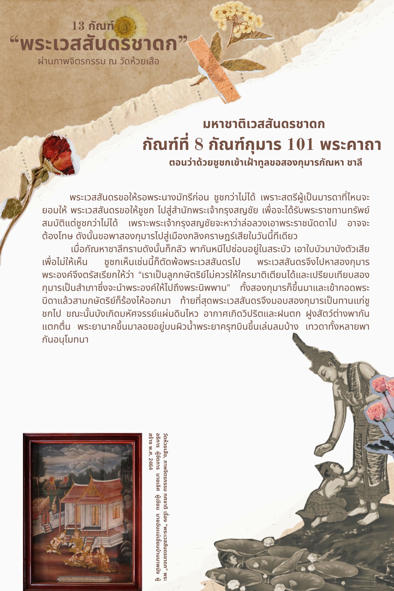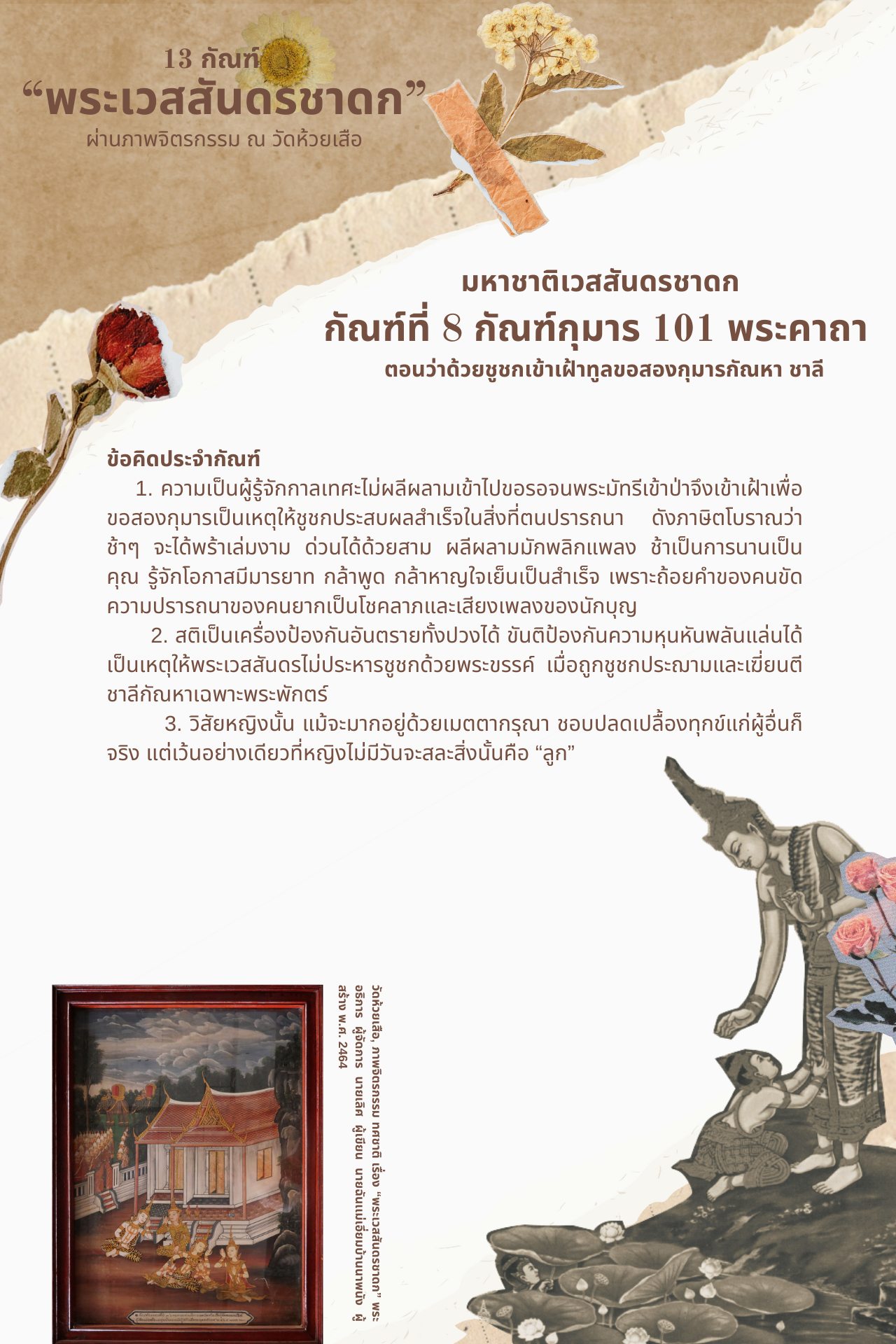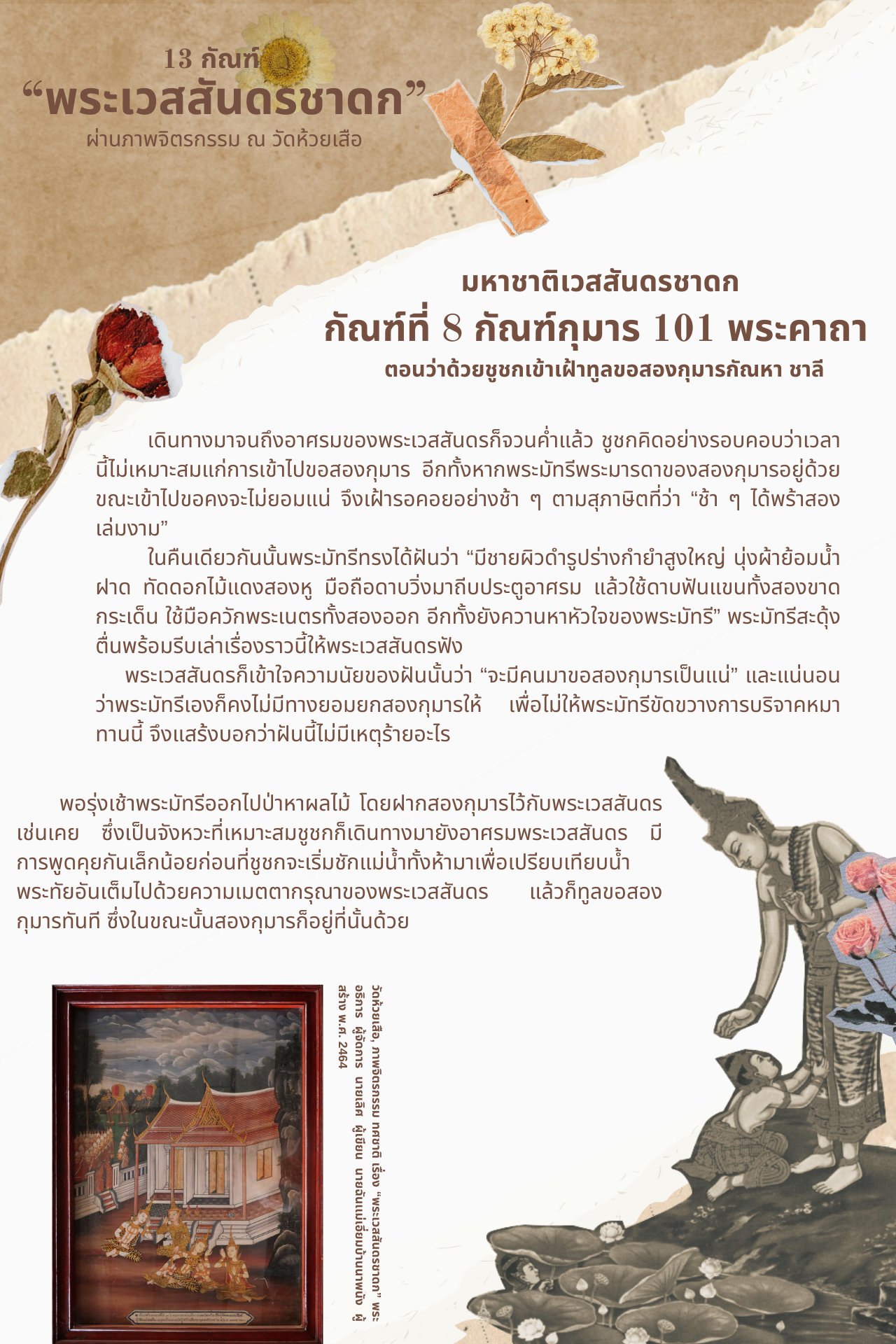 13 กัณฑ์ “พระเวสสันดรชาดก” ผ่านภาพจิตรกรรม ณ วัดห้วยเสือ ตอน กัณฑ์ที่ 8 กุมาร 101 พระคาถา