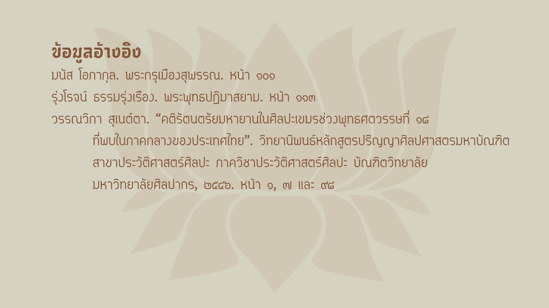 เรียบเรียงข้อมูล โดยนางสาวสโรชินี หง่าสงฆ์ ภัณฑารักษ์ปฏิบัติการ พิพิธภัณฑสถานแห่งชาติ สุพรรณบุรี