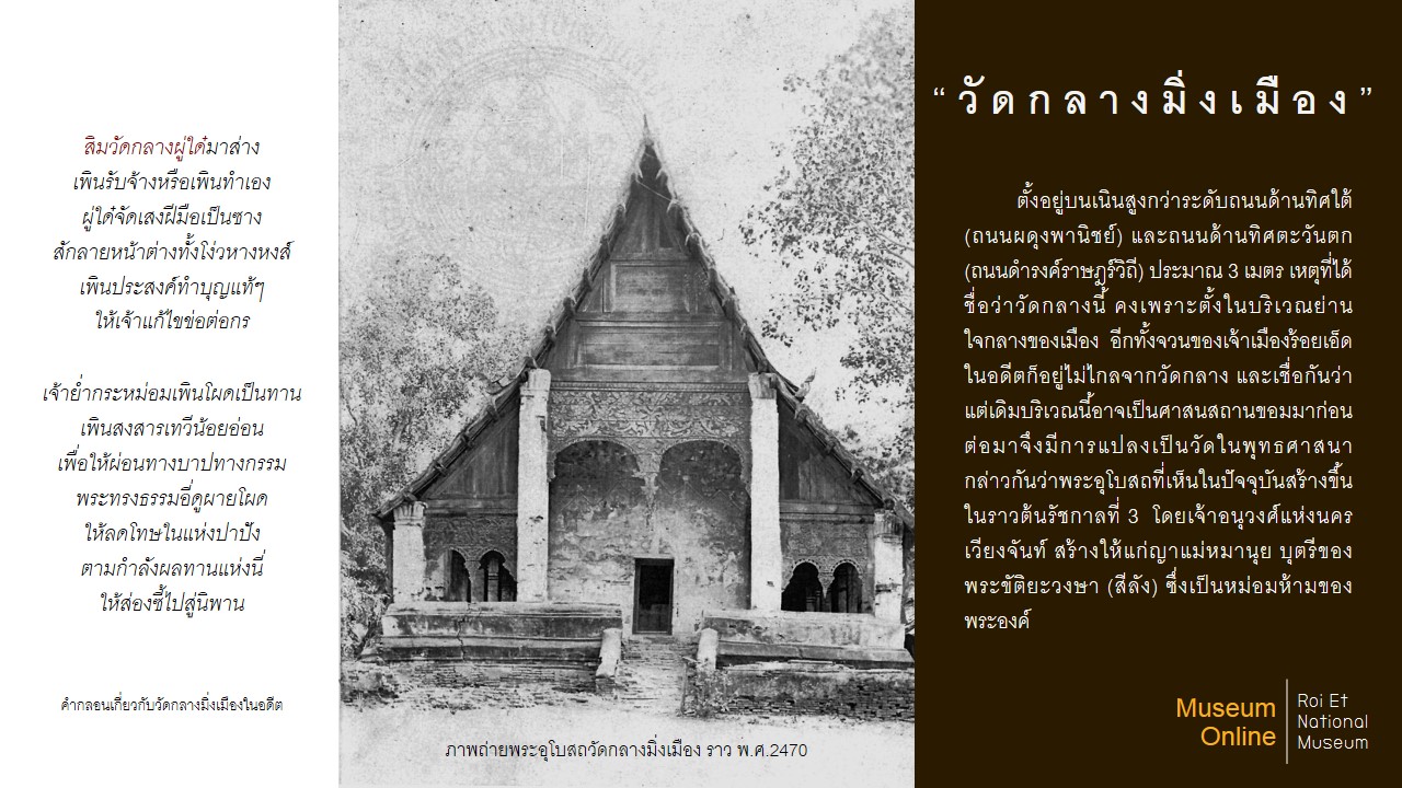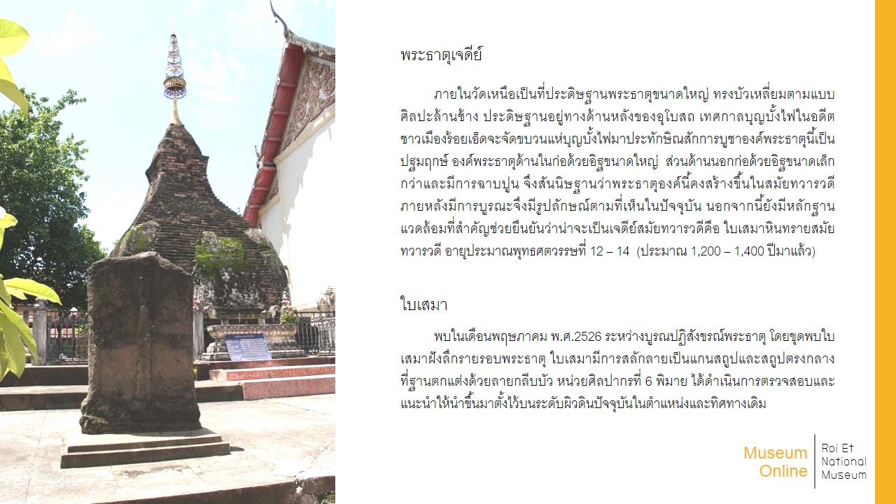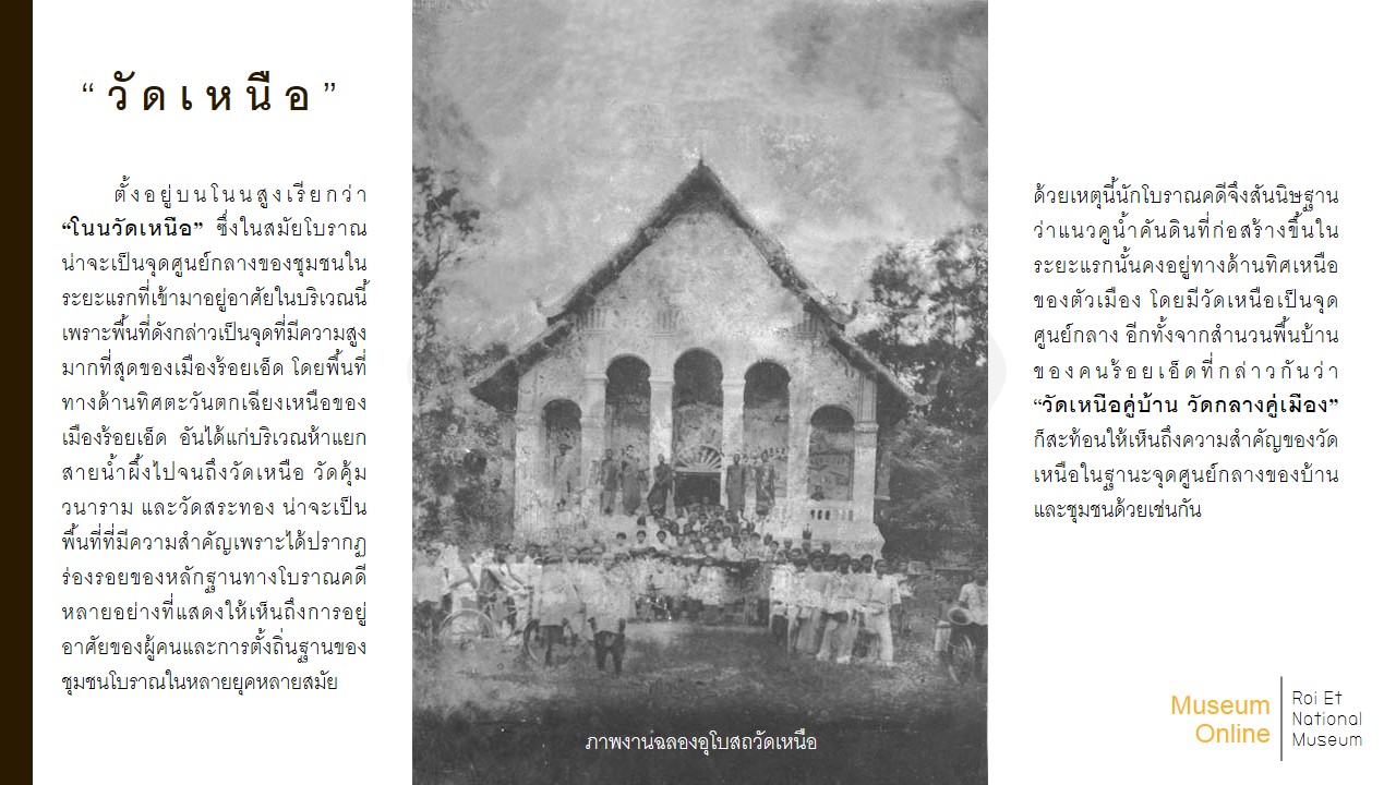 องค์ความรู้เรื่อง วัดเหนือคู่บ้าน วัดกลางคู่เมือง จัดทำข้อมูลโดย พิพิธภัณฑสถานแห่งชาติ ร้อยเอ็ด