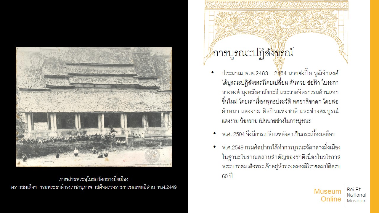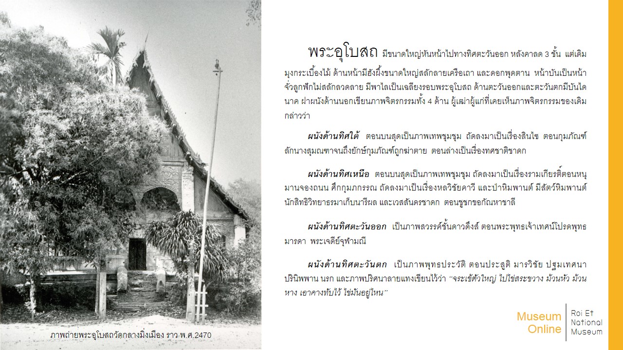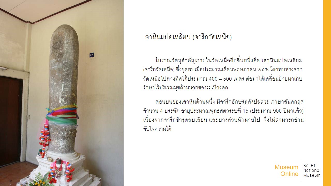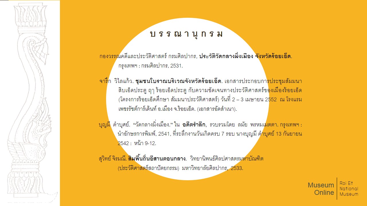 องค์ความรู้เรื่อง วัดเหนือคู่บ้าน วัดกลางคู่เมือง จัดทำข้อมูลโดย พิพิธภัณฑสถานแห่งชาติ ร้อยเอ็ด