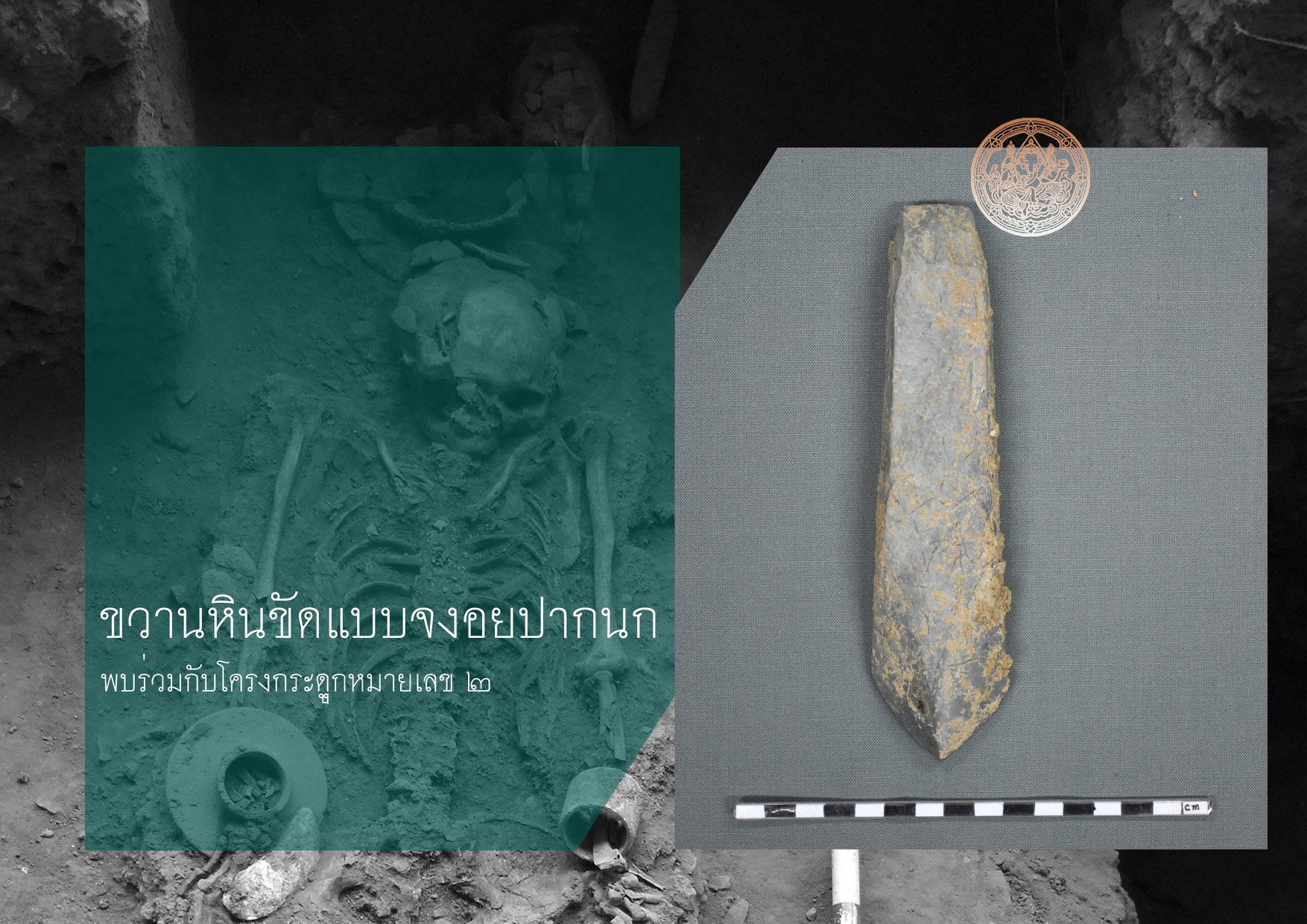 - ขวานหินขัดแบบจงอยปากนก จำนวน ๑ ชิ้น