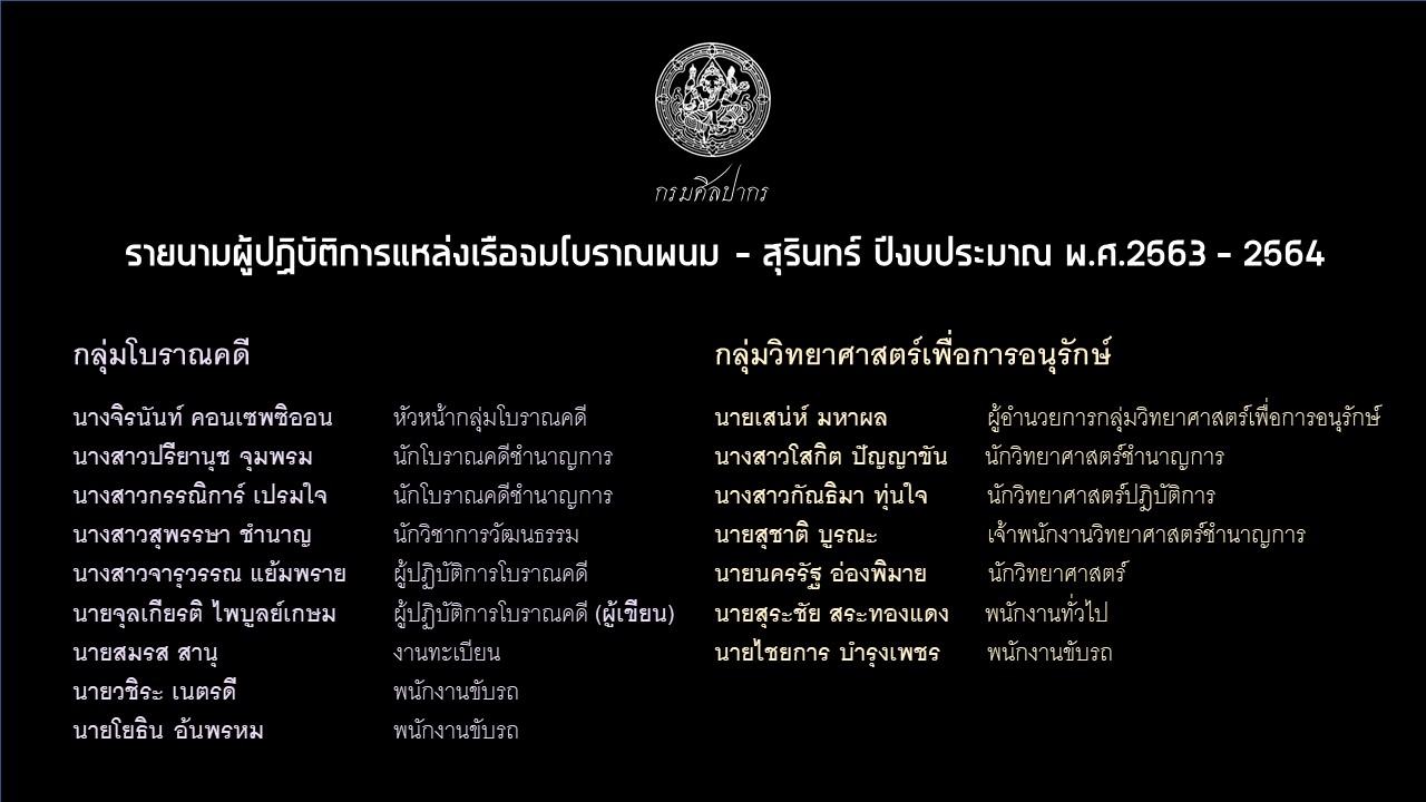 สรุปผลโครงการขุดค้นทางโบราณคดีแหล่งเรือจมโบราณพนม-สุรินทร์ งบประมาณปี พ.ศ.๒๕๖๓