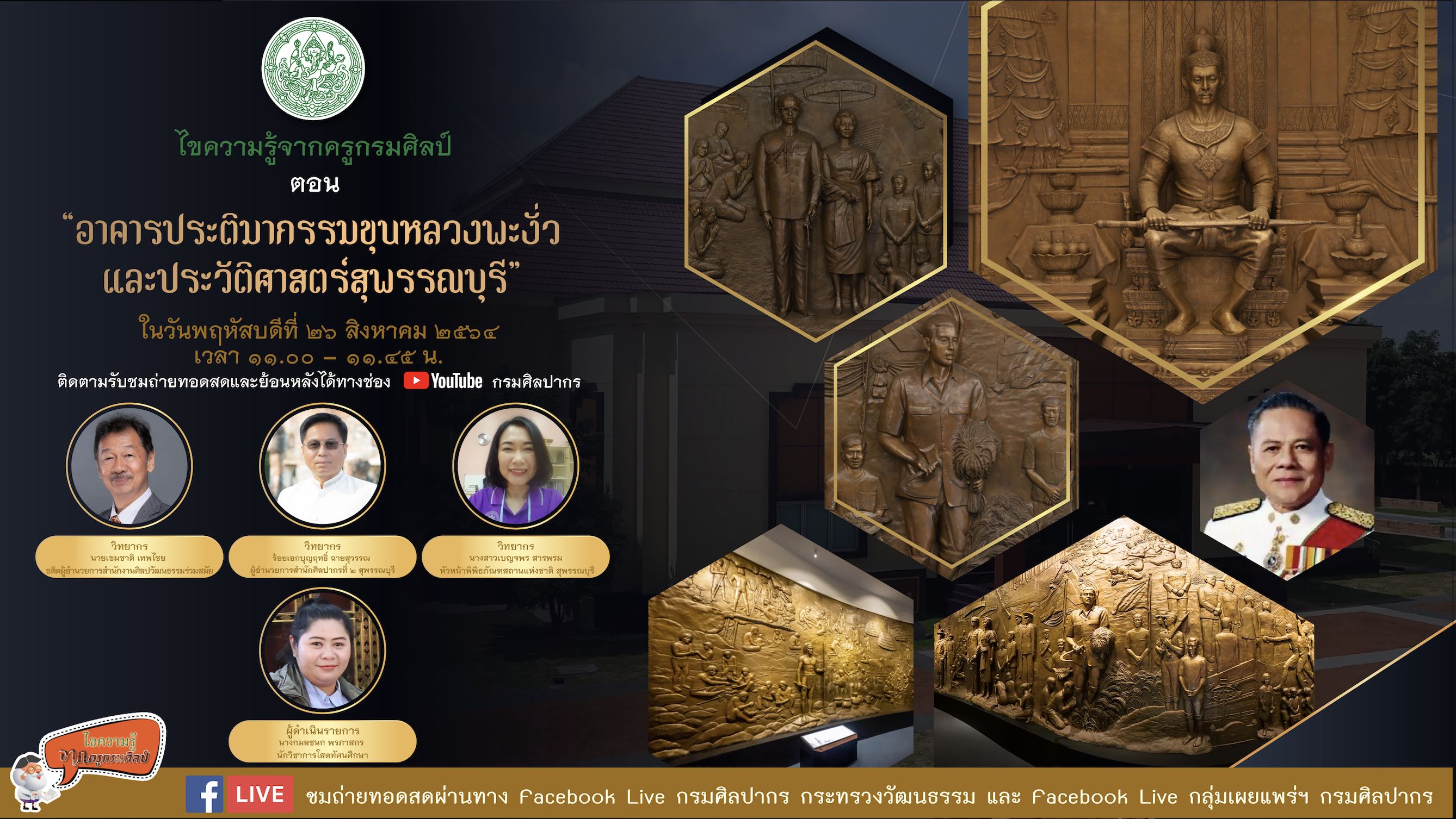 ขอเชิญชม Facebook Live รายการไขความรู้จากครูกรมศิลป์ ตอน อาคารประติมากรรมขุนหลวงพะงั่วและประวัติศาสตร์สุพรรณบุรี”